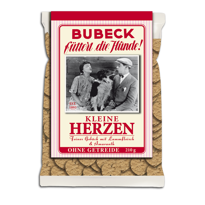 Kleine Herzen to drobne ciasteczka w kształcie serduszek, idealne dla małych piesków. Bezglutenowe, bez dodatku cukru i konserwantów. Zawierają wyłącznie jedno źródło białka - mięso jagnięce, dzięki czemu są idealne dla psich alergików. Jagnięcina to bardzo delikatne i zdrowe, hipoalergiczne mięso, odpowiednie nawet dla psów o bardzo wrażliwych żołądkach. Ciasteczka są wypiekane w kamiennym piecu, dzięki czemu nie są tłuste, nie brudzą rąk i mają przyjemny zapach.