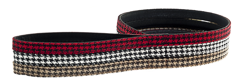 Smycz wykonana została z bardzo miękkiej, delikatnej, a jednocześnie trwałej sztucznej skóry. Zewnętrzna część ozdobiona została przepiękną pepitką przyciągającą wzrok.