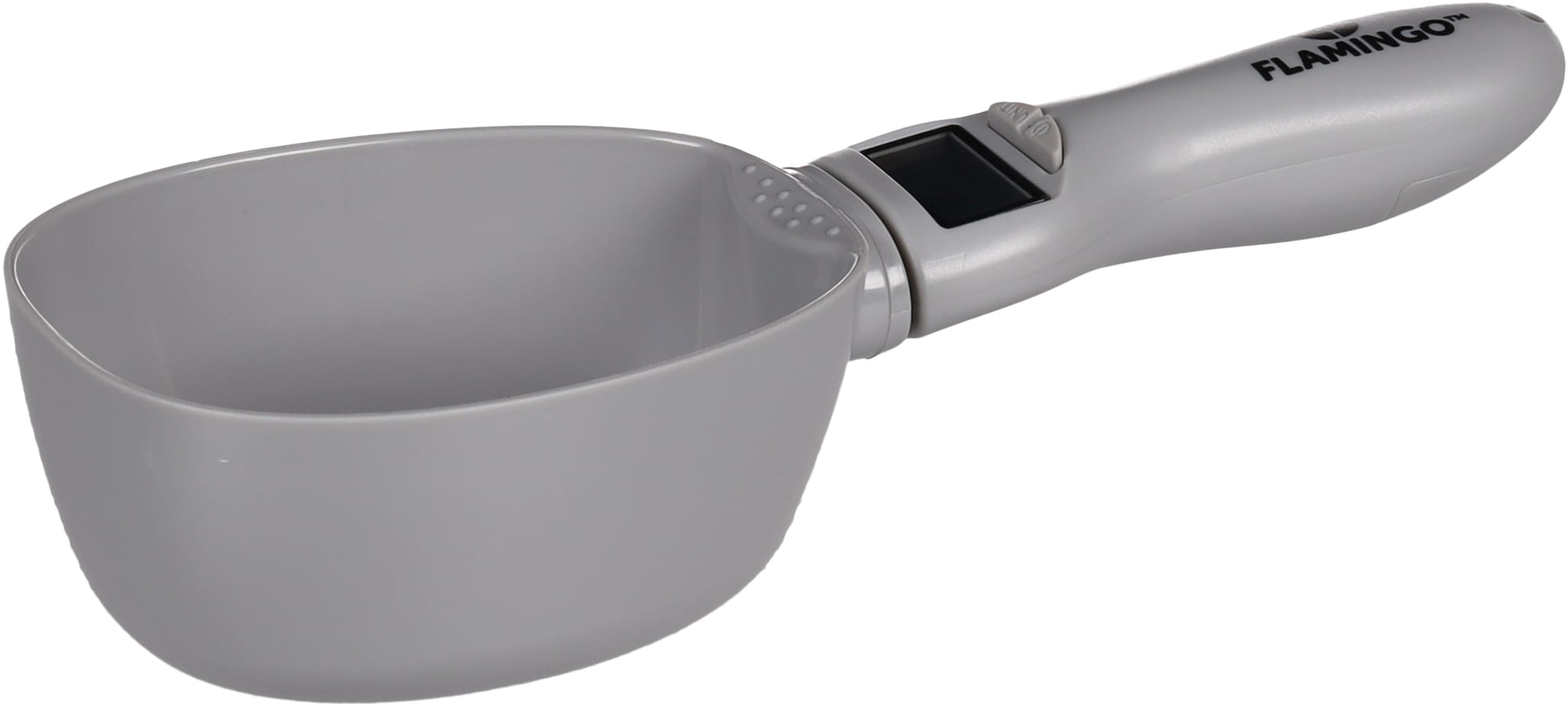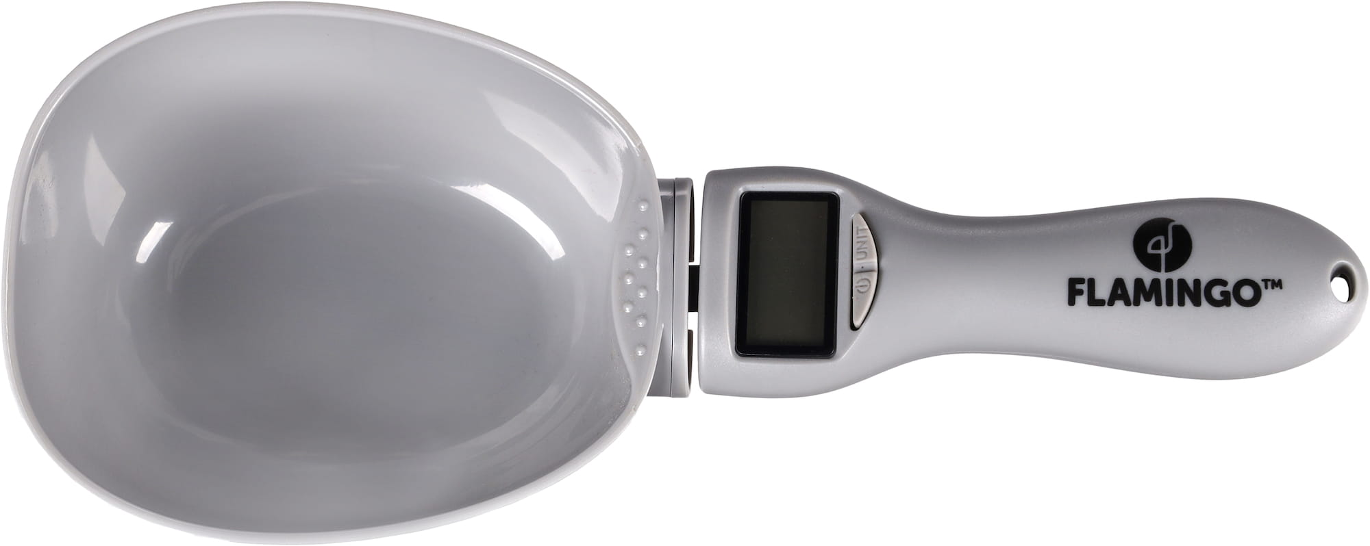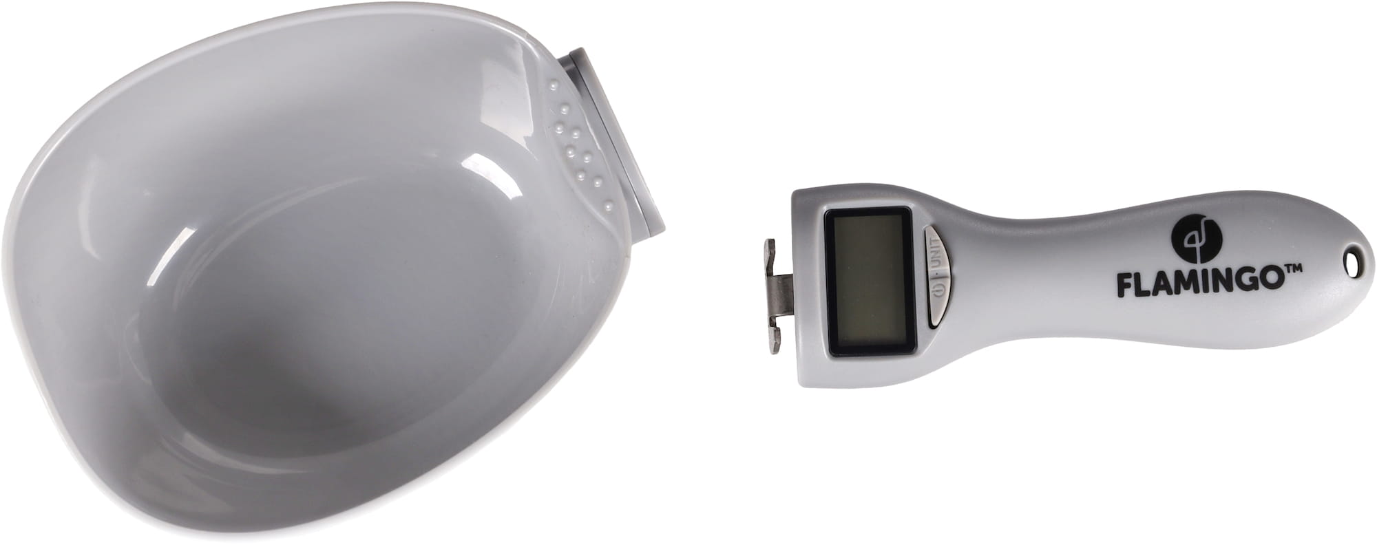 Cyfrowa miarka do karmy marki Flamingo pomoże Ci w precyzyjnym odmierzeniu konkretnej ilości jedzenia dla pupila.