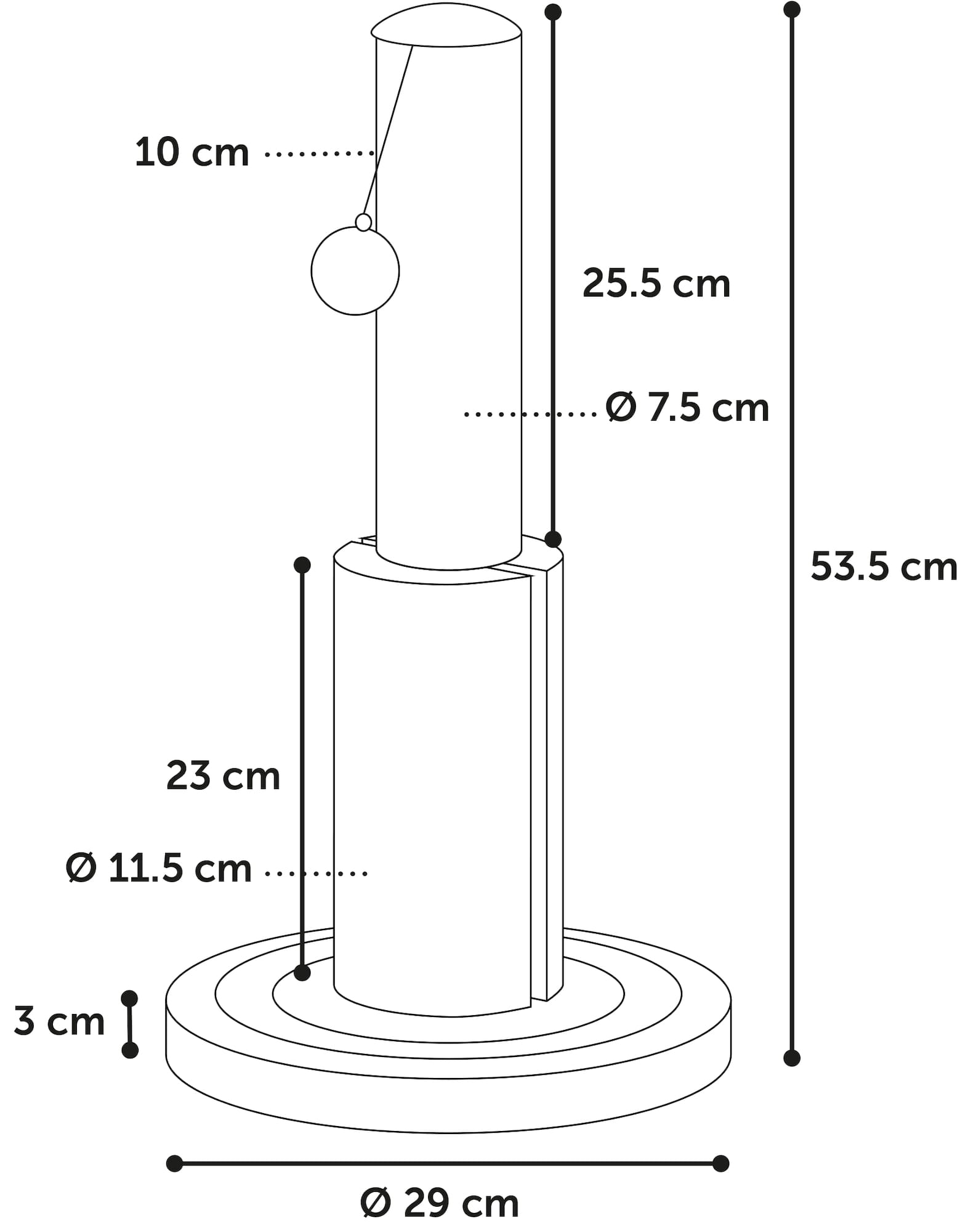 Całkowita wysokość drapaka to 53,5 cm! Na samej górze znajduje się dodatkowa zabawka - piłeczka z dzwonkiem, która zachęca do dodatkowych zabaw.