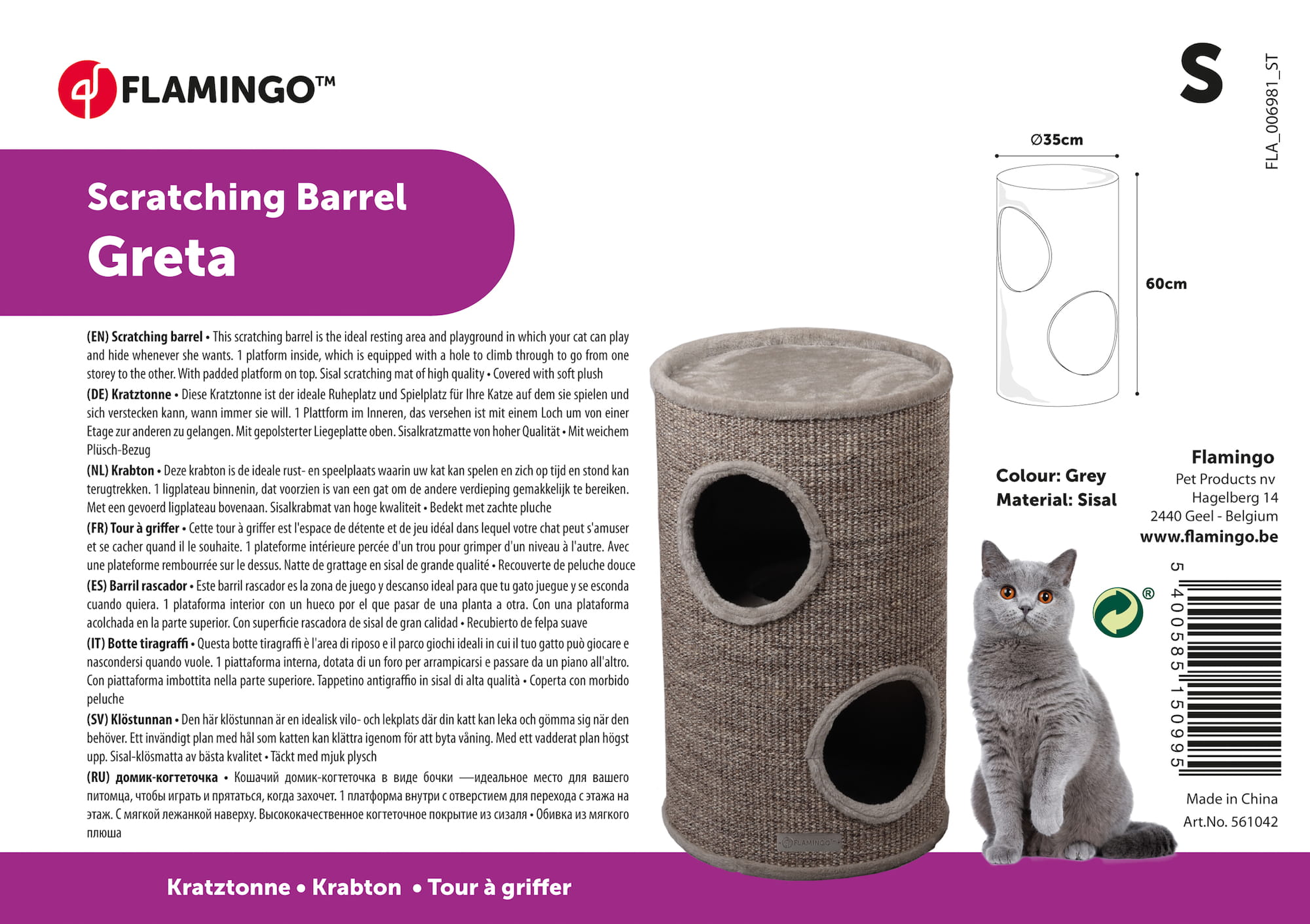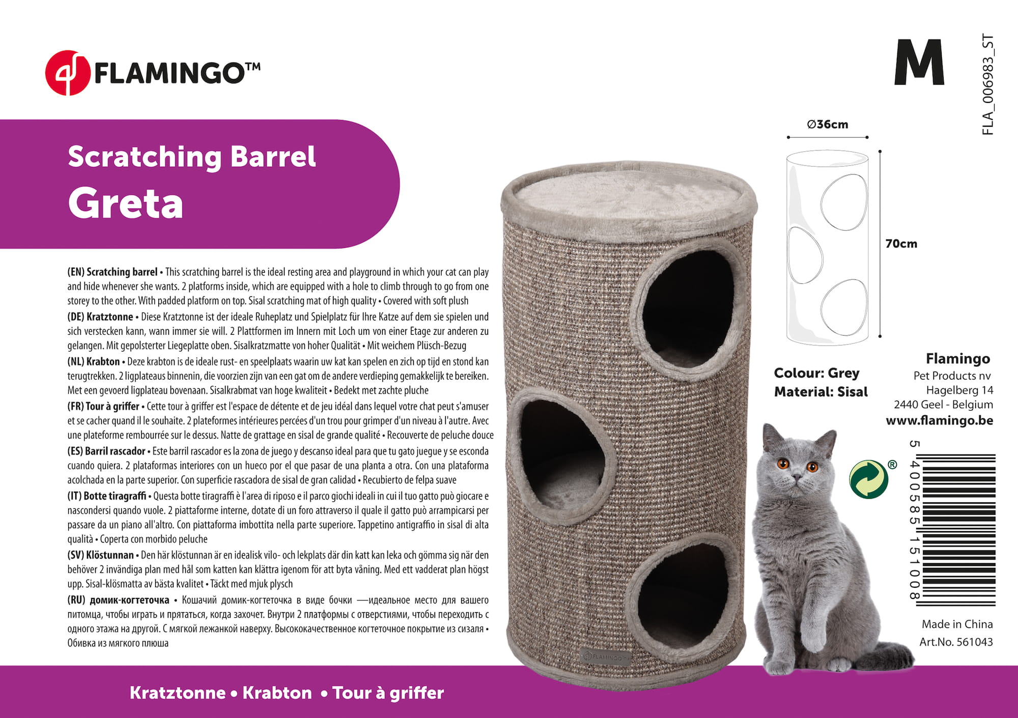 Drapak dla kota Barrel w formie wieży dostępny jest w 2 rozmiarach. Rozmiar S posiada 2 otwory, rozmiar M natomiast 3.