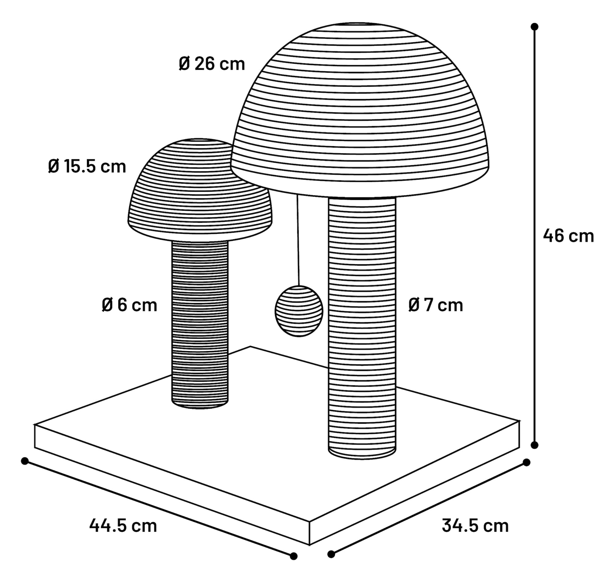Grubość podstawy: 1,7 cm i średnica słupków do drapania: 6 i 7 cm
