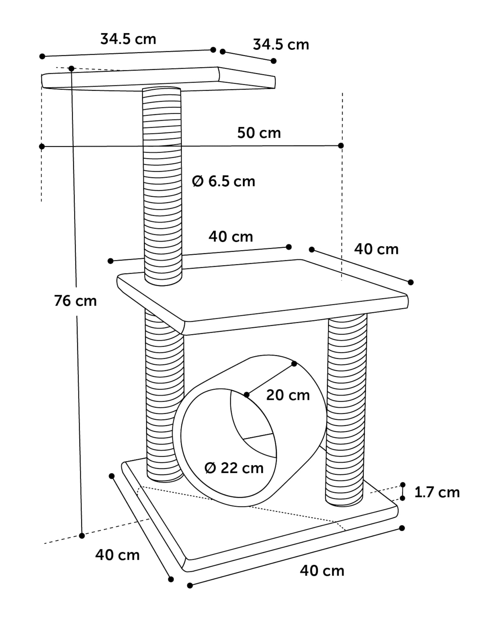 Średnica słupka do drapania: 6,5 cm