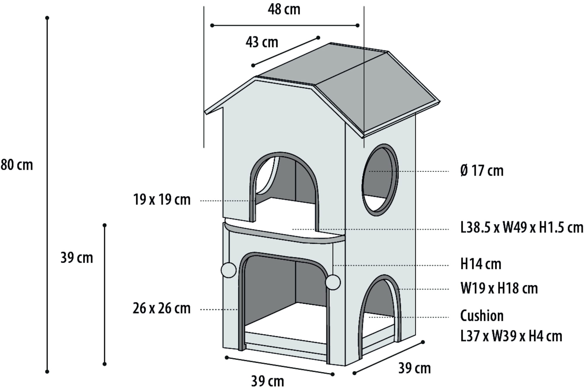 Domek dla kota wygląda wspaniale i będzie dodatkowym elementem ozdobnym w mieszkaniu właściciela. To prawdziwie urocza propozycja. Twój kot będzie przeszczęśliwy.