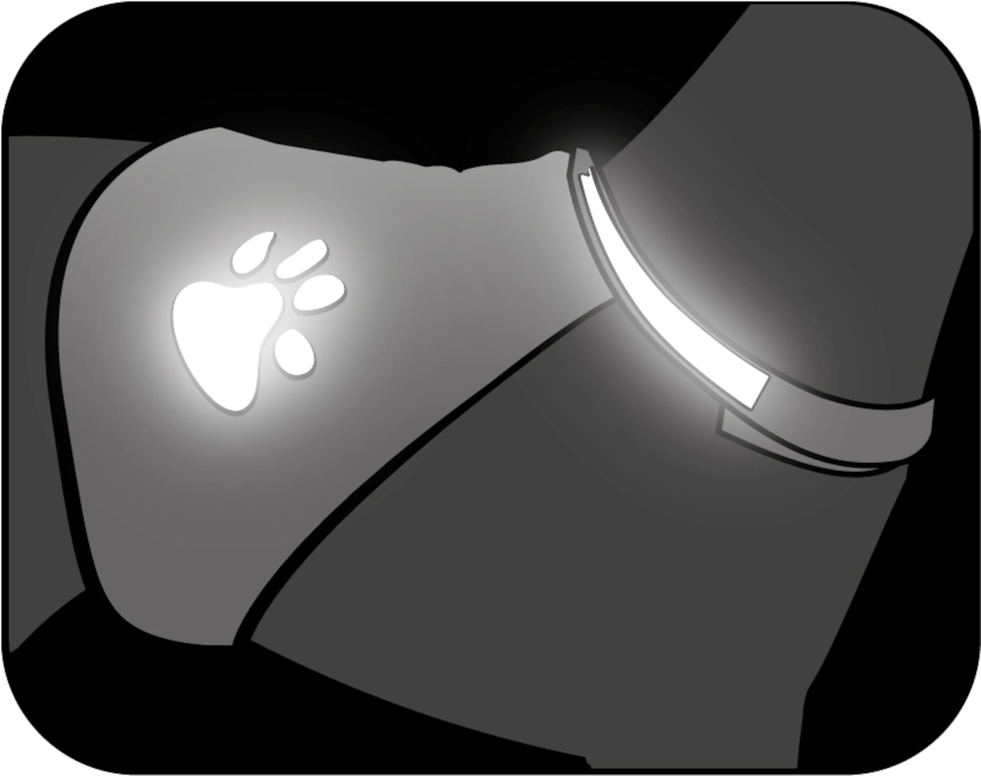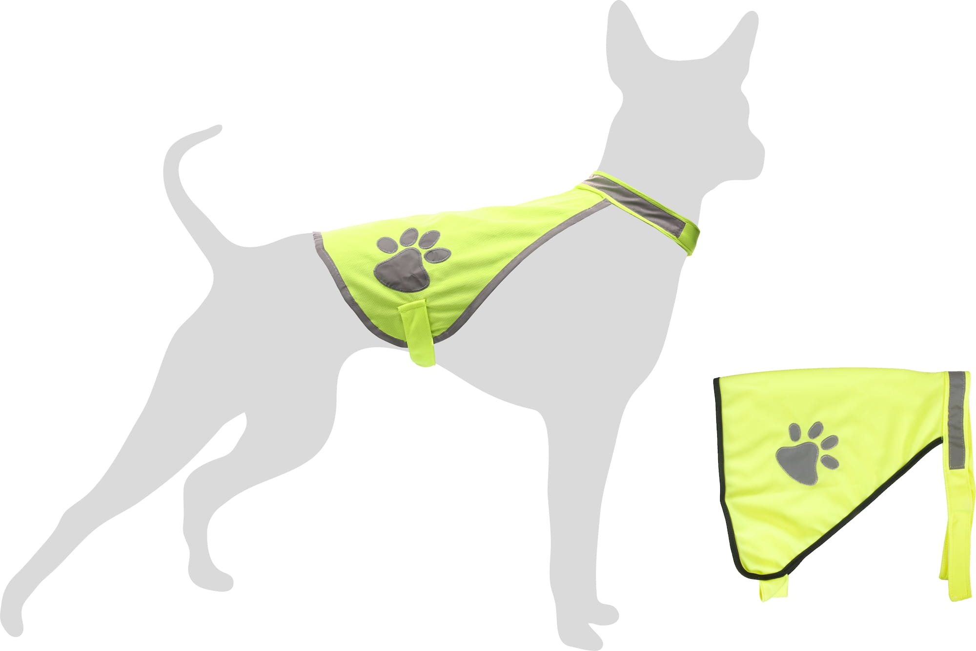 Kamizelka dla psa posiada możliwość regulacji na szyi oraz w obrębie klatki piersiowej. Elementem ozdobnym jest odblaskowa łapka.