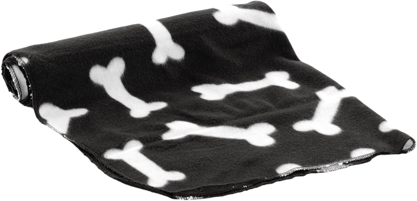 Podaruj swojemu pupilowi super miękki kocyk dla psa lub kota Milda z motywem kości! Czarne akcesorium w białe kości będzie dodatkowym elementem ozdobnym w pomieszczeniu!