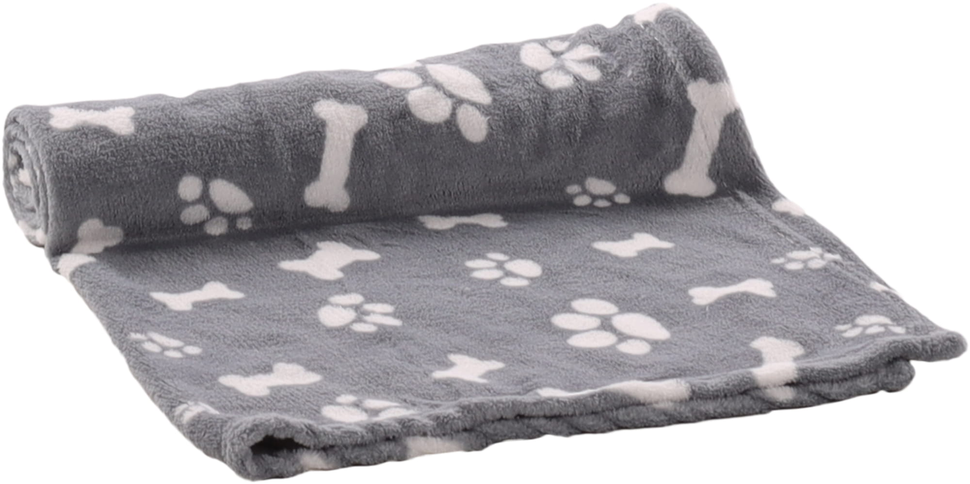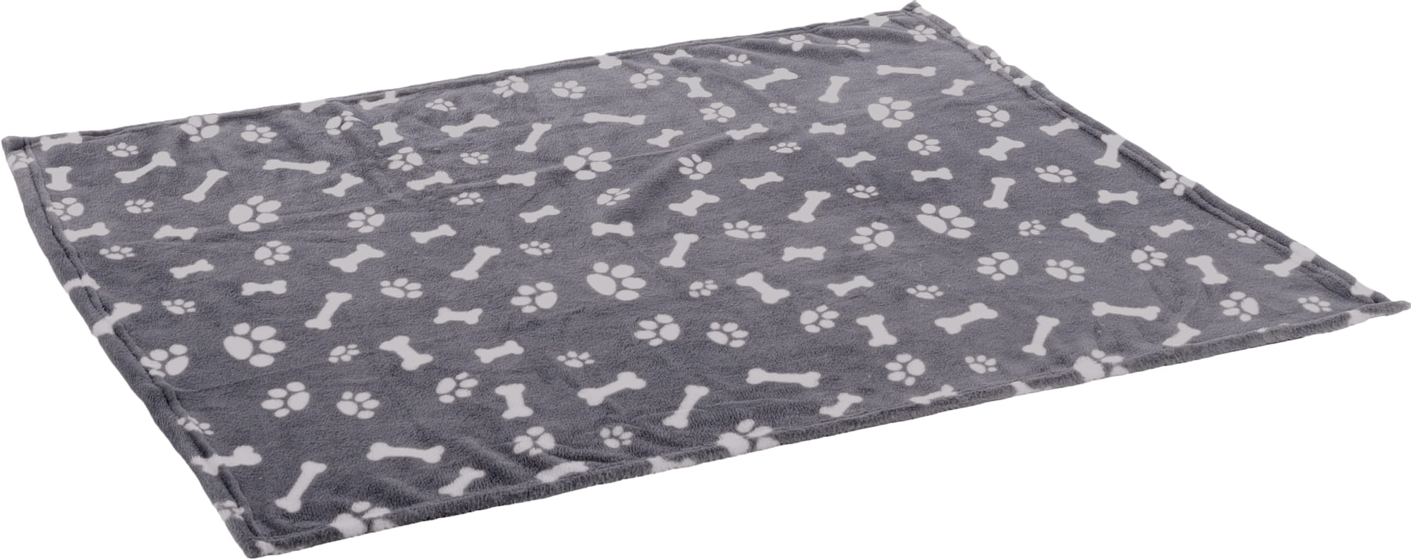 Podaruj swojemu pupilowi super miękki kocyk dla psa lub kota Zuma! Szare akcesorium w białe kości i łapki będzie dodatkowym elementem ozdobnym w pomieszczeniu!