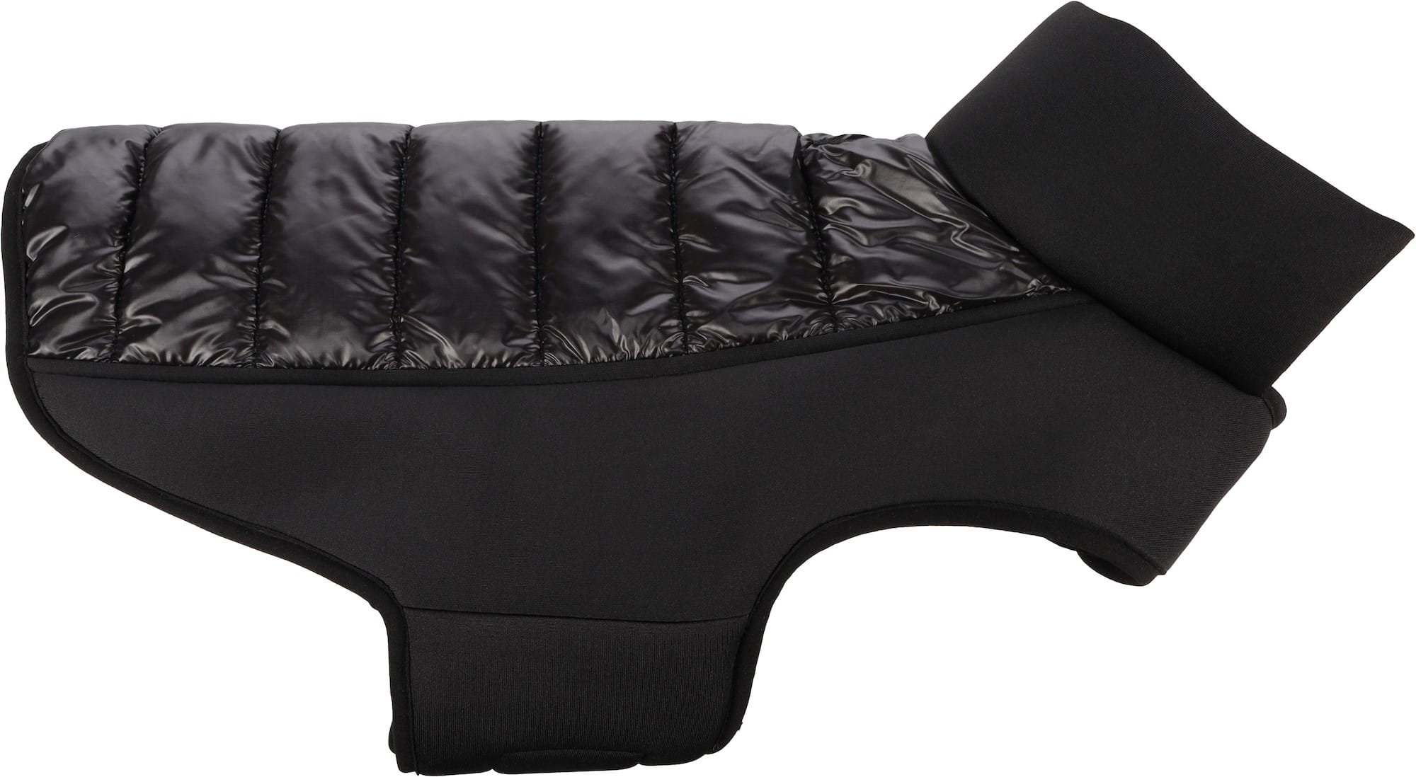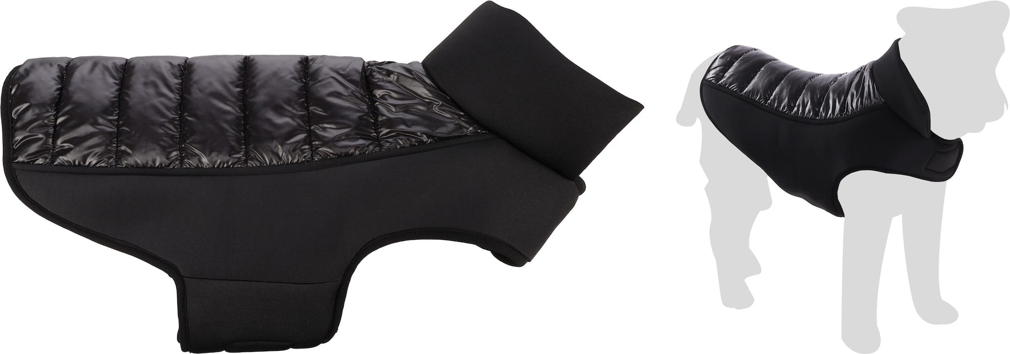 Kurtka dla psa z kolekcji Jakaro wykonana została z przyjemnego w dotyku poliestru. Śliski materiał na grzbiecie jest eleganckim elementem ozdobnym, który wraz z czarnym kolorem tworzy piękną stylizację.