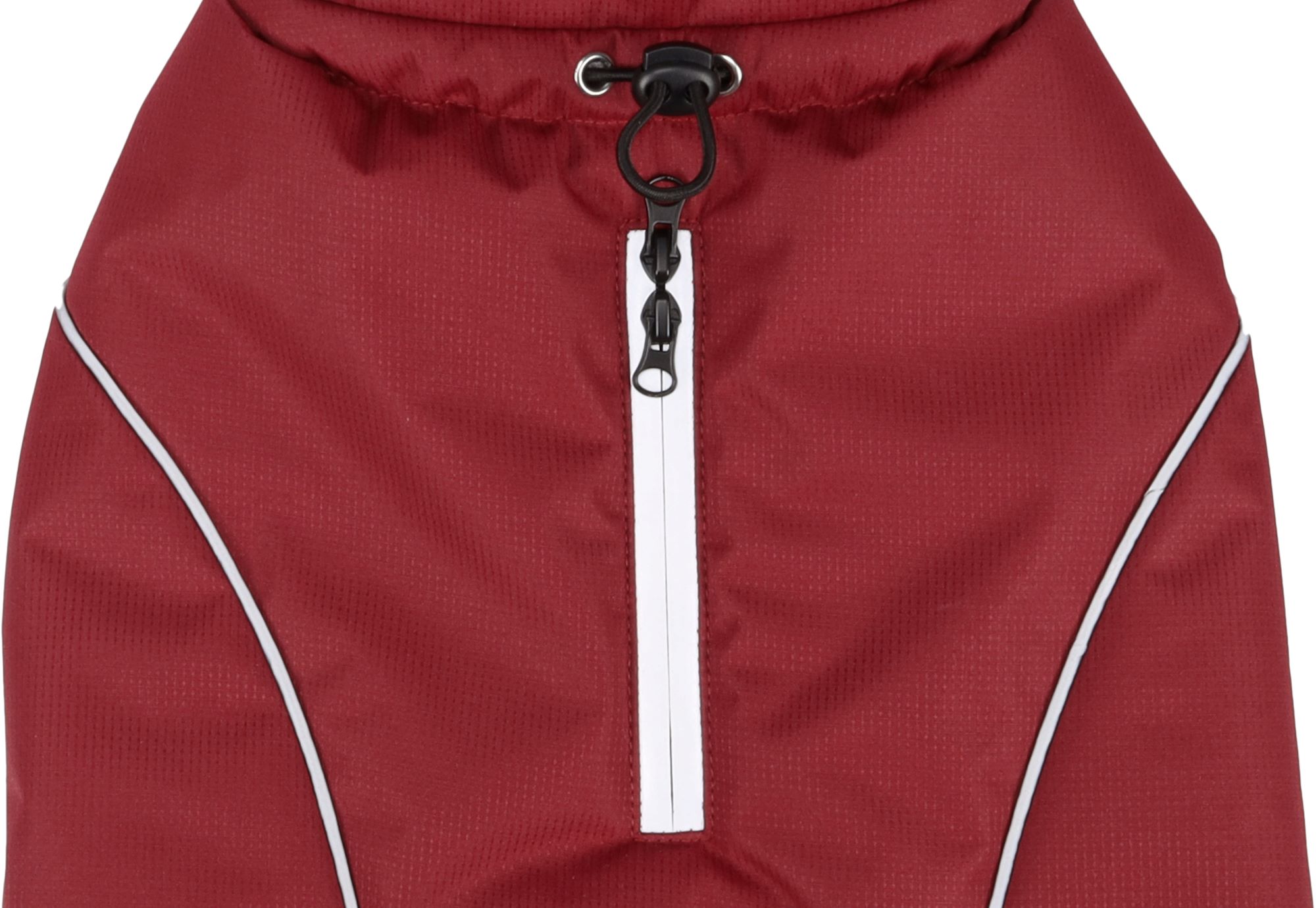Czerwona kurtka dla psa z kolekcji Ragna wykonana została z miękkiego i przyjemnego w dotyku poliestru. Wewnątrz wykończona została miękkim polarem, który zapewnia ciepło w jesienne oraz zimowe dni.