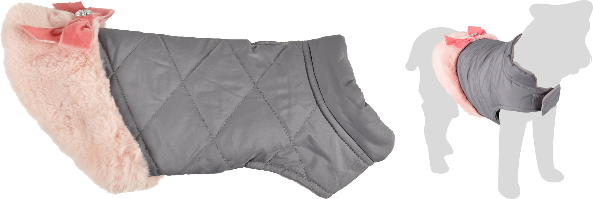 Kurtka dla psa Valentina jest ciepła i wygodna w użytkowaniu. Element charakterystyczny? Gustowna kokardka z malutkim kamyczkiem. To propozycja dla prawdziwych psich księżniczek!