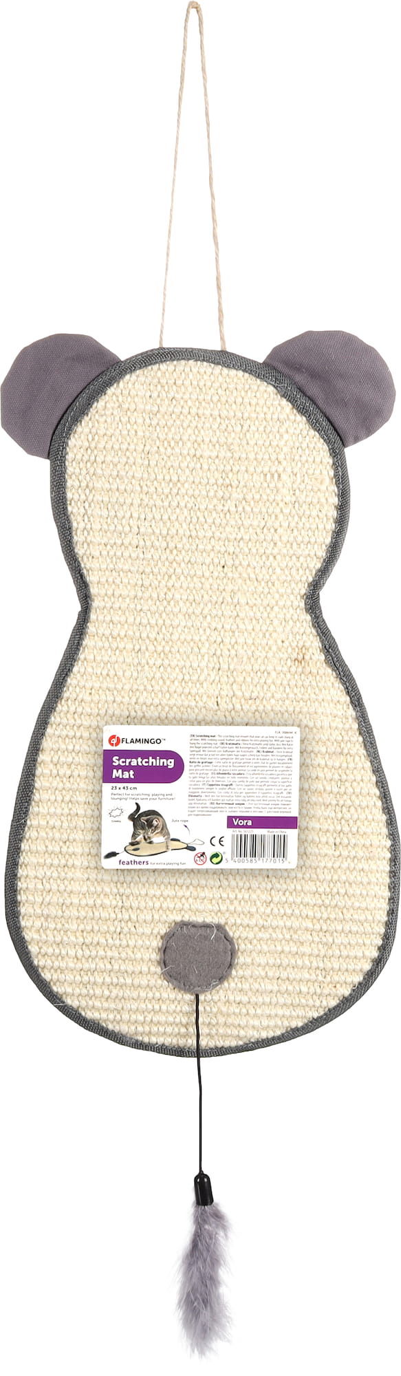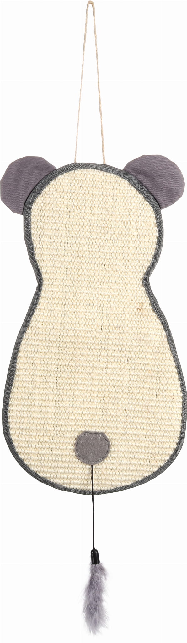 Mata do drapania w kształcie myszki jest uroczym akcesorium, który możesz położyć na podłodze lub powiesić na ścianie (za pomocą umieszczone na spodzie sznureczka).
