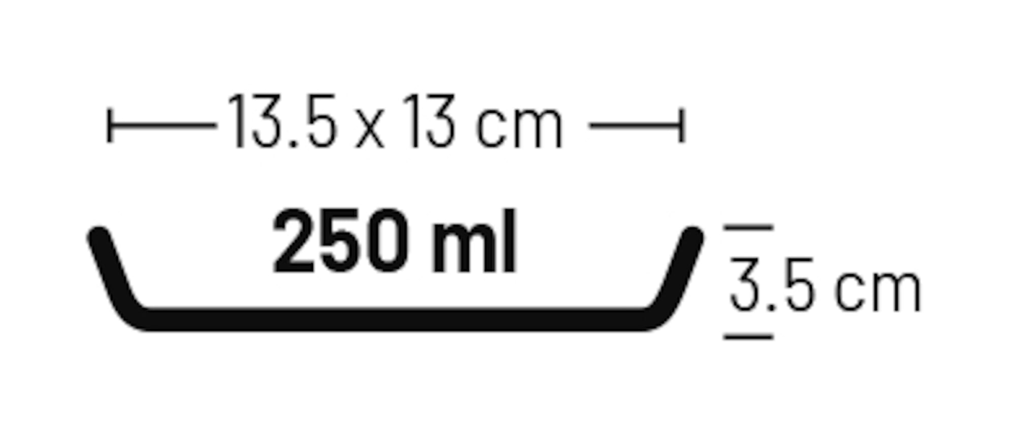 | 250 ml | 13,5 cm L x 13 cm W x 3,5 cm H | 290g ℮ |
