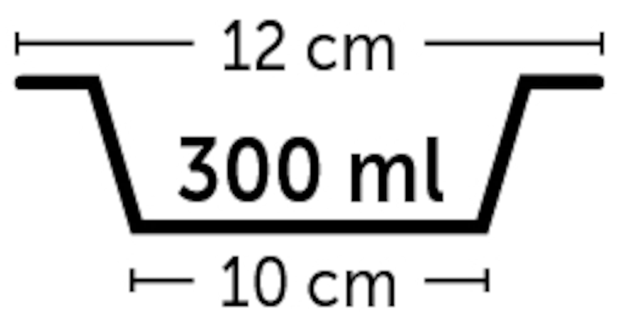 | 300 ml | ∅ 12 cm | 12 cm L x 12 cm W x 4,5 cm H |