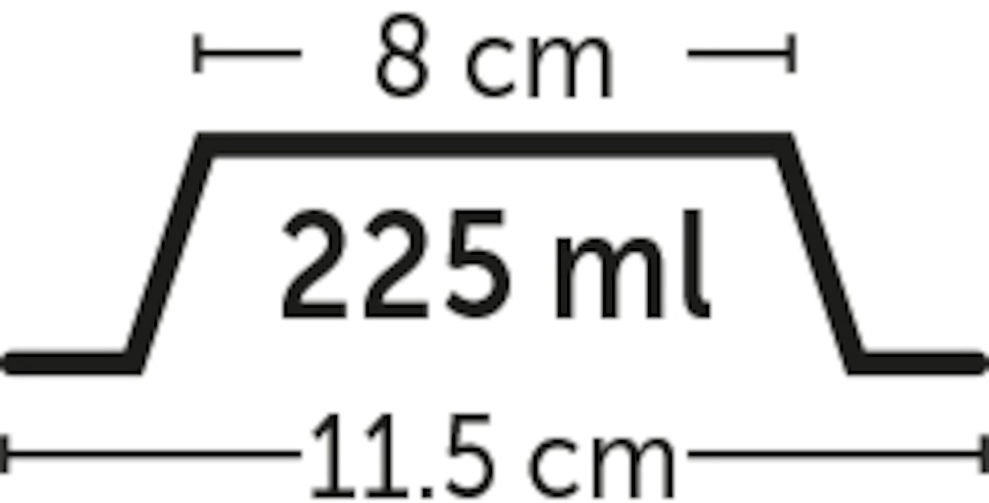 | 14.3 cm L x 14.3 cm W x 5.4 cm H | 225 ml |
