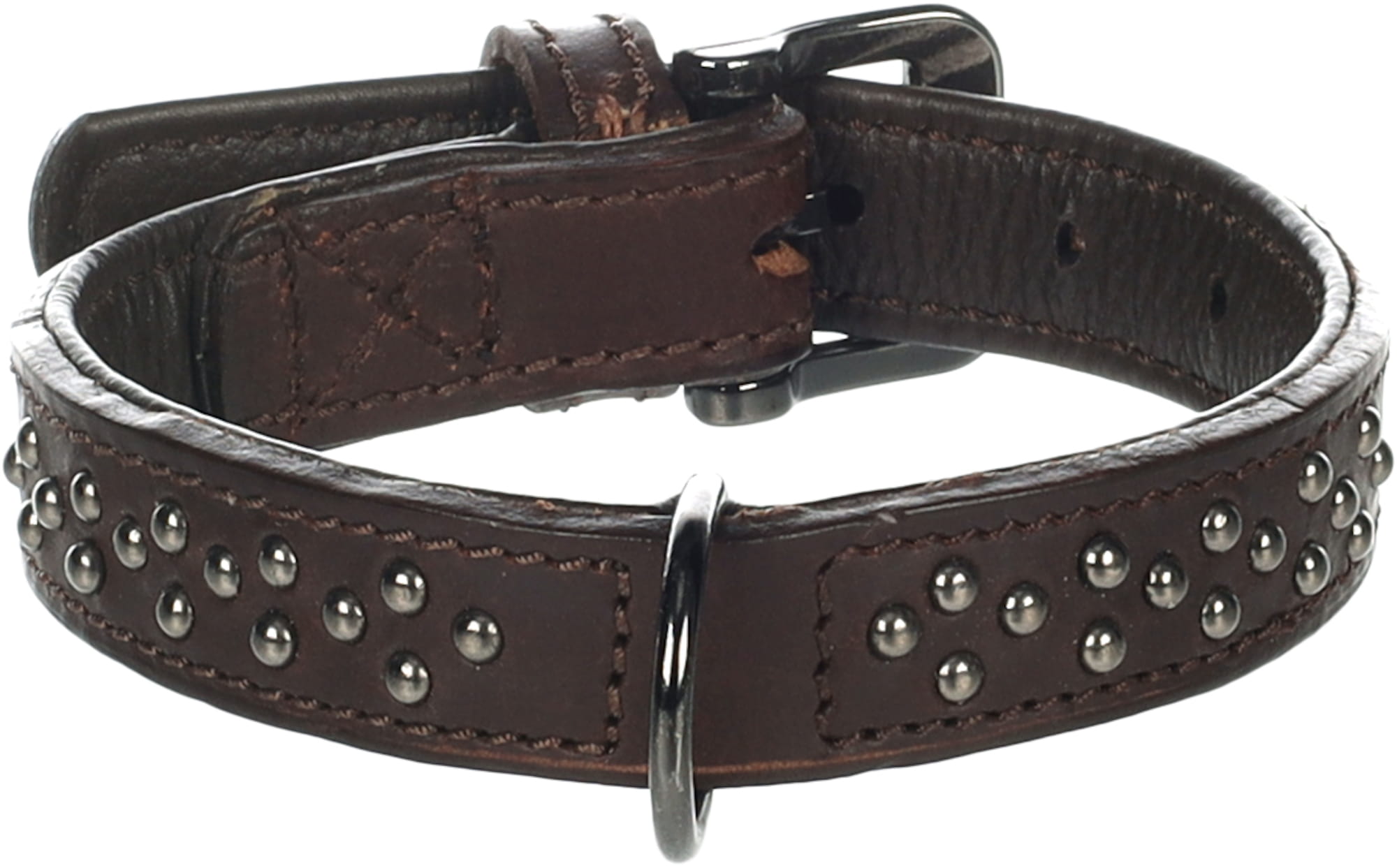 Flamingo Obroża skórzana dla psa Denver brązowa z ćwiekami
