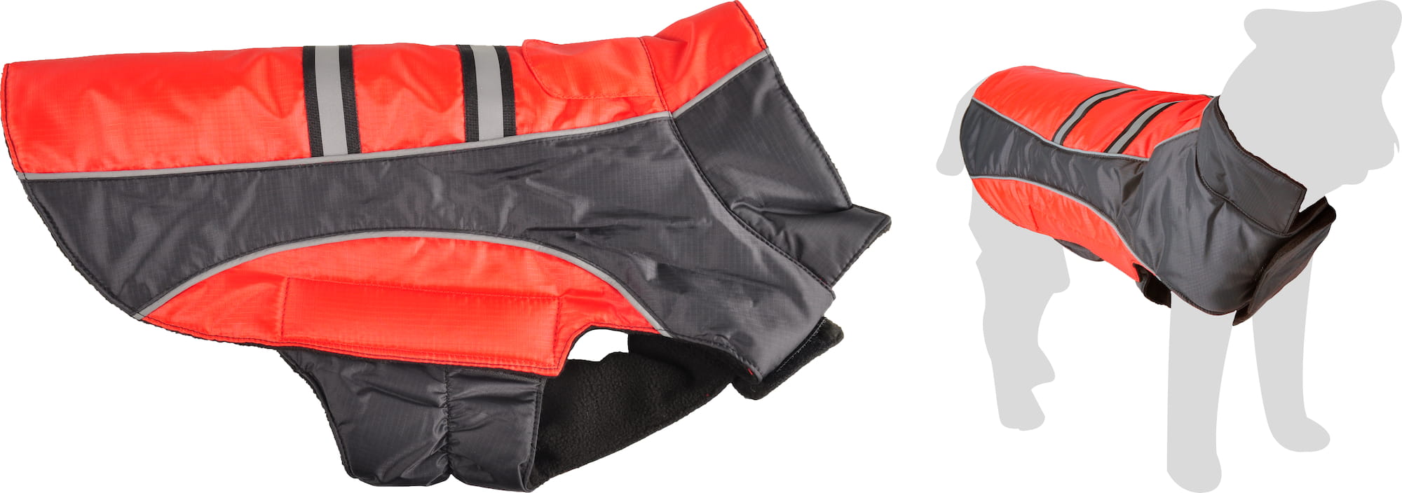 Płaszcz przeciwdeszczowy dla psa zapewni mu dodatkowo ochronę przed wiatrem. Ubranie posiada polarową podszewkę.