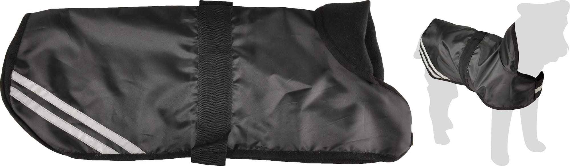 Płaszczyk przeciwdeszczowy dla psa Mika wykonany został z przyjemnego w dotyku nylonu. Wewnątrz pokryty jest miękkim polarem, co gwarantuje komfort w użytkowaniu. Nie wyciera oraz nie kołtuni sierści pupila.