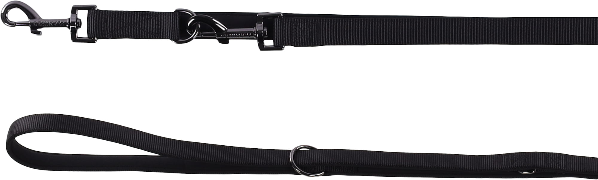 Czarna smycz dla psa z kolekcji Abbi o długości 200 cm lub 250 cm to doskonały wybór dla każdego miłośnika psów! Praktyczna, solidna smycz wykonana została z odpornego nylonu. Rączka produktu wyściełana jest miękkim i przyjemnym w dotyku neoprenem, co pozwoli na wygodę chwytu oraz odpowiedni komfort jej użytkowania.