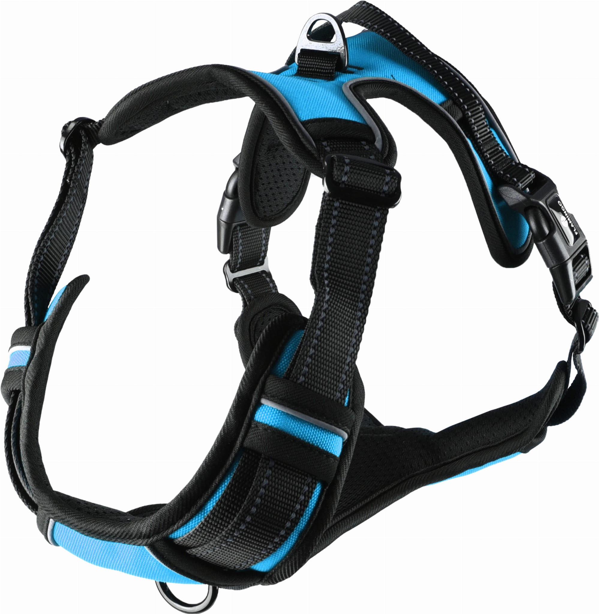 Szelki dla psa z kolekcji Balou wykonane zostały z wodoodpornego nylonu. Wewnątrz wyściełane są miękką siateczką - gąbką, która zapewnia jeszcze lepszy komfort użytkowania przez pupila. Akcesorium nie wyciera oraz nie kołtuni sierści.
