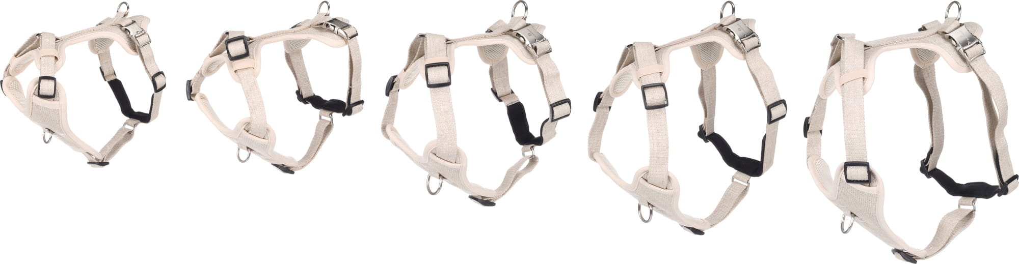 Szelki dla psa z kolekcji Lago wykonane zostały z wytrzymałego lnu. Miękka wyściółka i oddychająca siateczka zapewniają komfort użytkowania przez pupila.