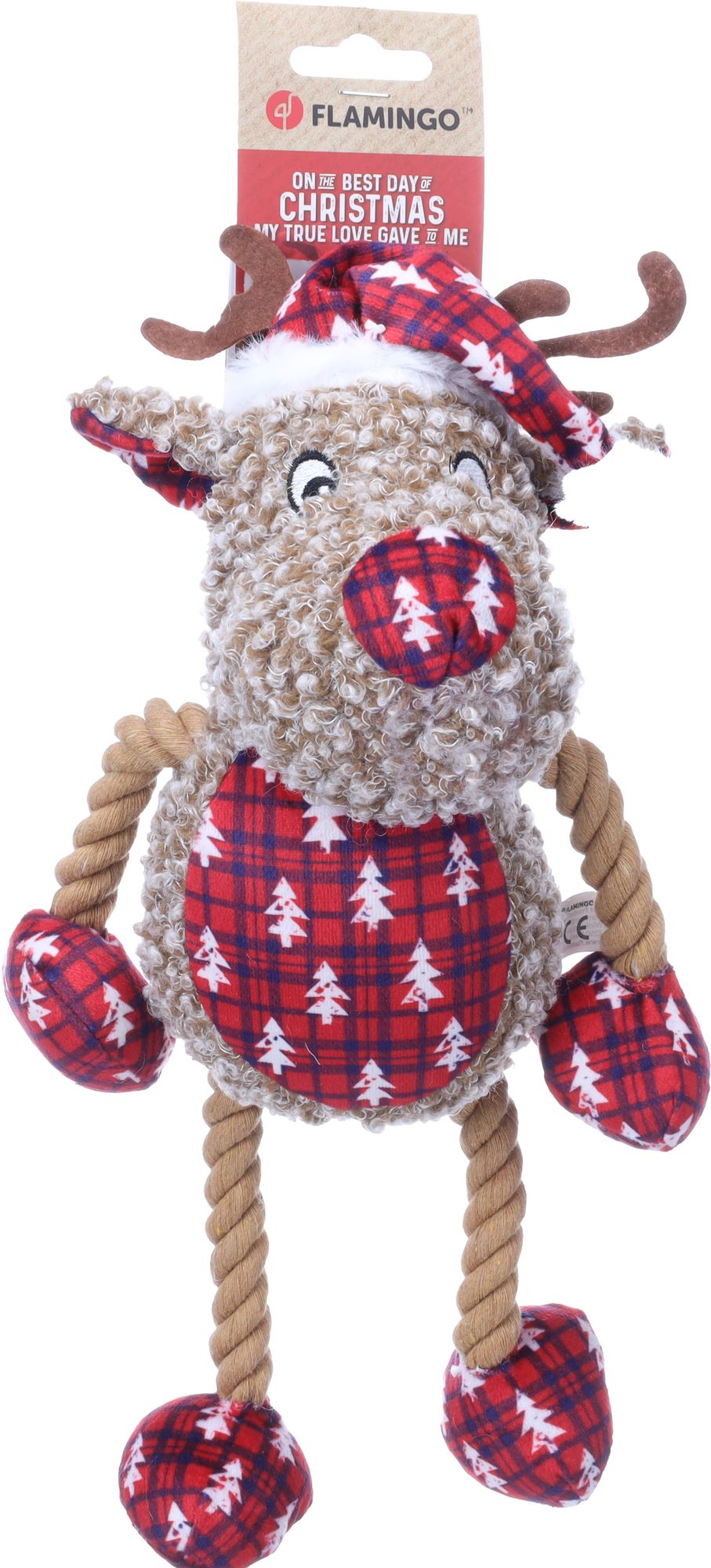Flamingo Zabawka Świąteczna dla psa Renifer z liną