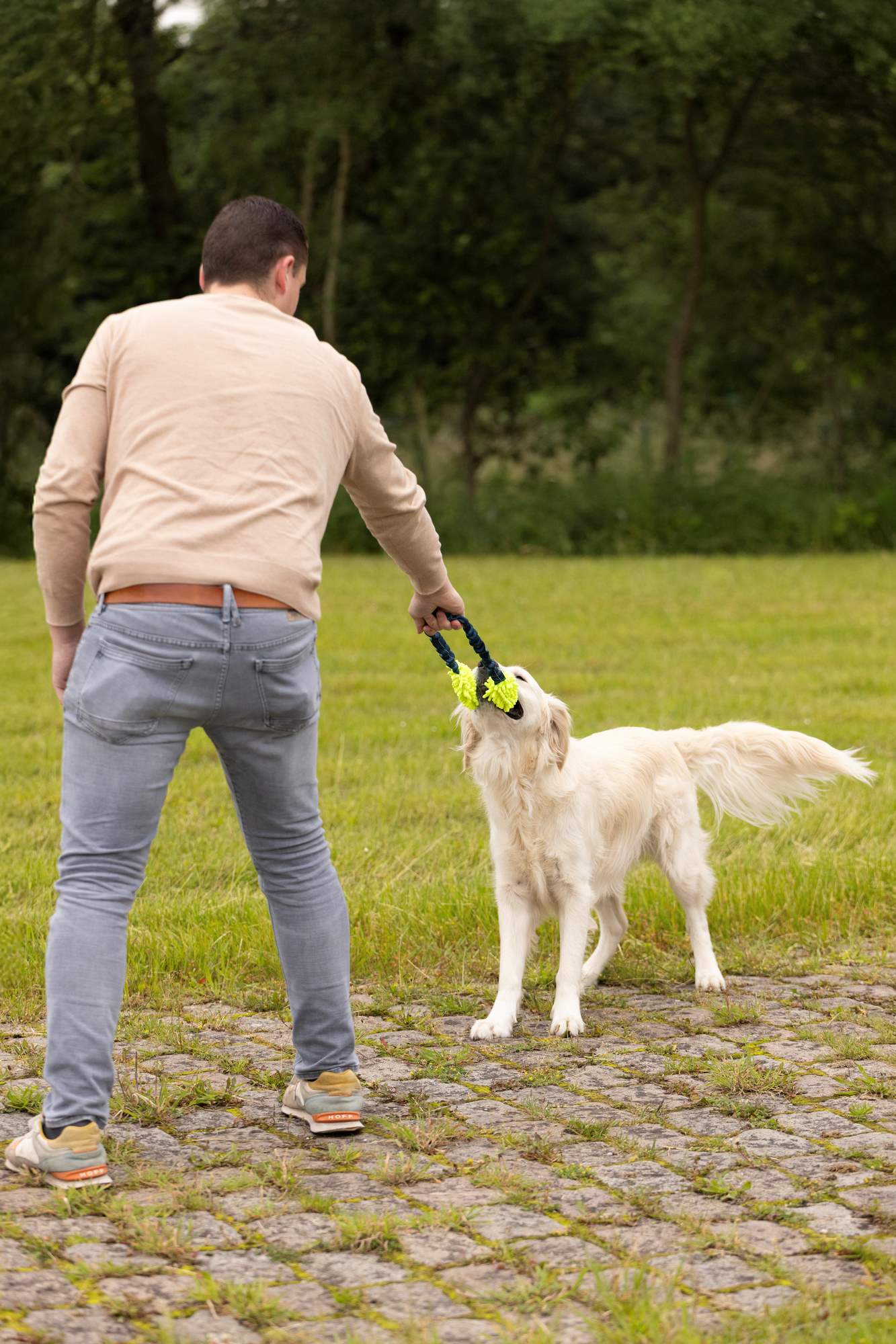 Szarpak wykonany został z nylonu oraz poliestru. Doskonale sprawdza się podczas nauki aportowania. Wykończenie z szenili oraz elastyczny, miękki uchwyt zapewniają długie godziny zabaw. Wspólna zabawa z właścicielem to świetna opcja spędzania czasu, która zwiększa waszą więź.