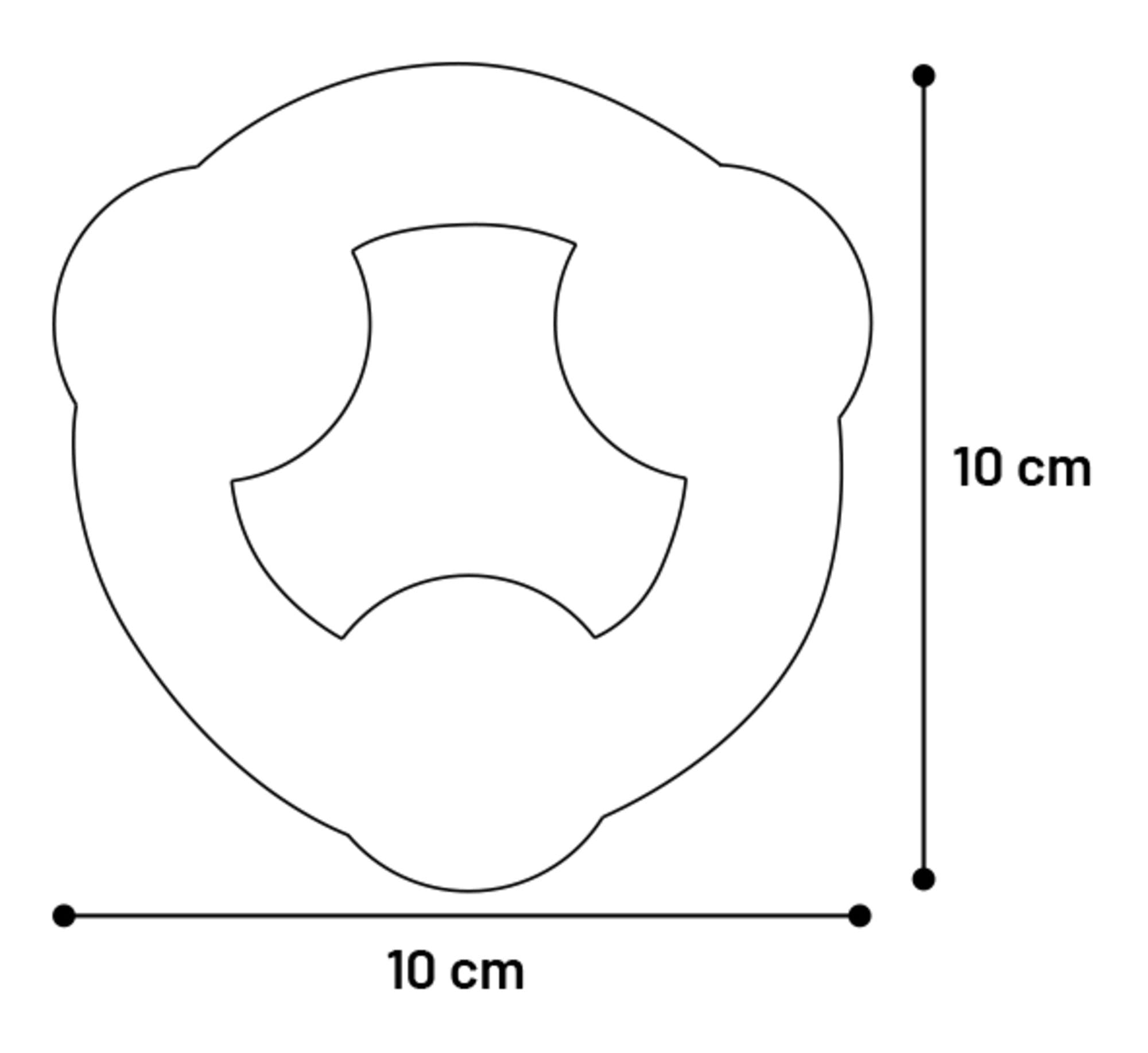 | S | 10 cm L x 10 cm W x 4 cm H |