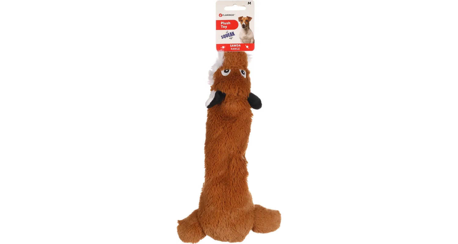Urocza zabawka dla psa w kształcie liska poleca się jako prezent dla pupila. Wykonana została z miękkiego i przyjemnego w dotyku pluszu. W środku posiada piszczałkę, aby uatrakcyjnić zabawę.