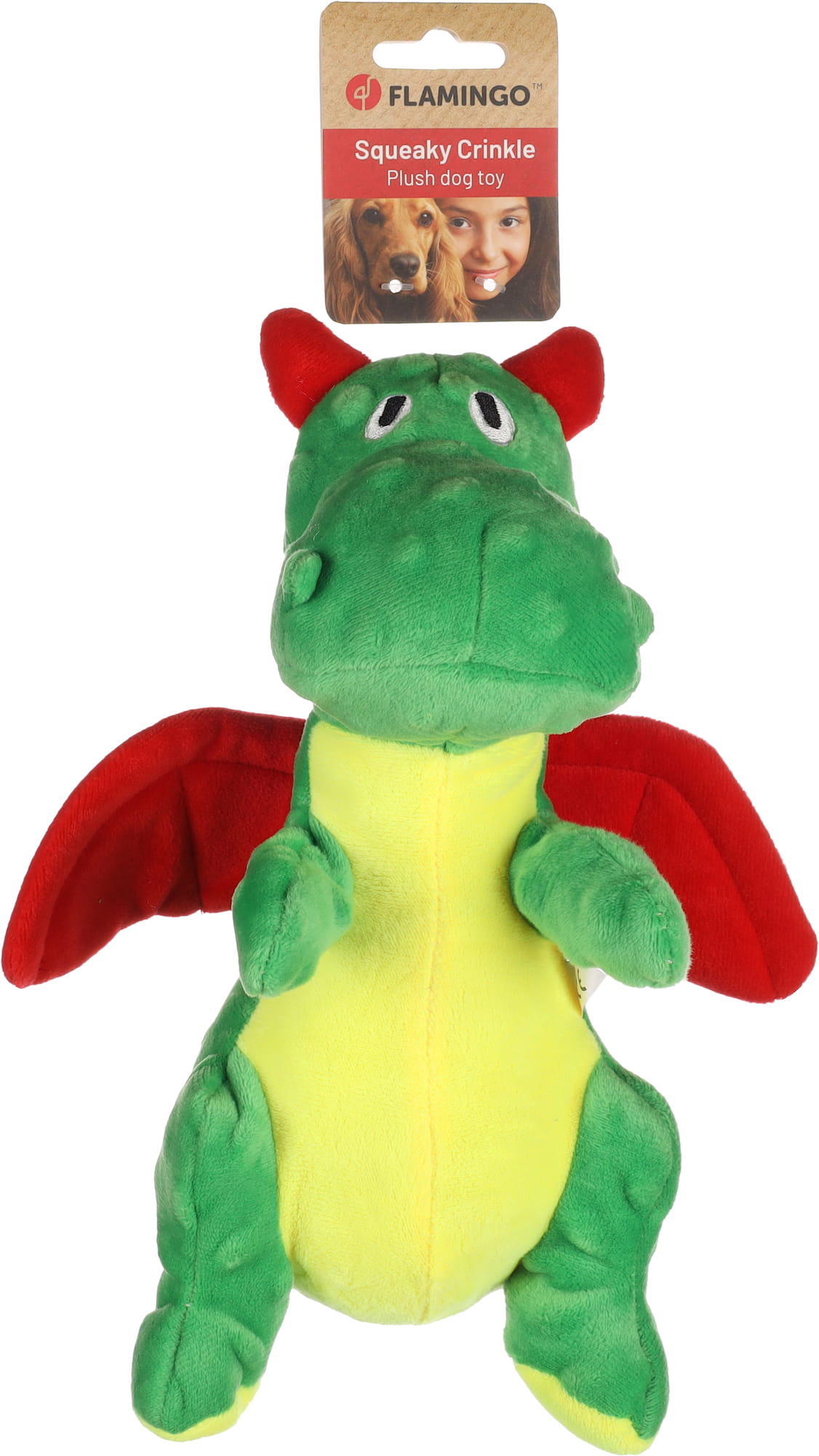 Zabawka dla psa w kształcie smoka posiada odstające elementy (łapki oraz skrzydła), które zachęcają do łatwego przechwytywania oraz przenoszenia.