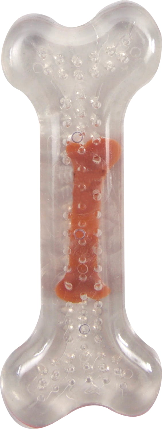 Zabawka dla psa w kształcie kości wykonana została z tworzywa TPR. Materiał jest bezpieczny dla psich zębów. Gryzienie kości w delikatny sposób pomaga zapobiegać powstawaniu płytki nazębnej.