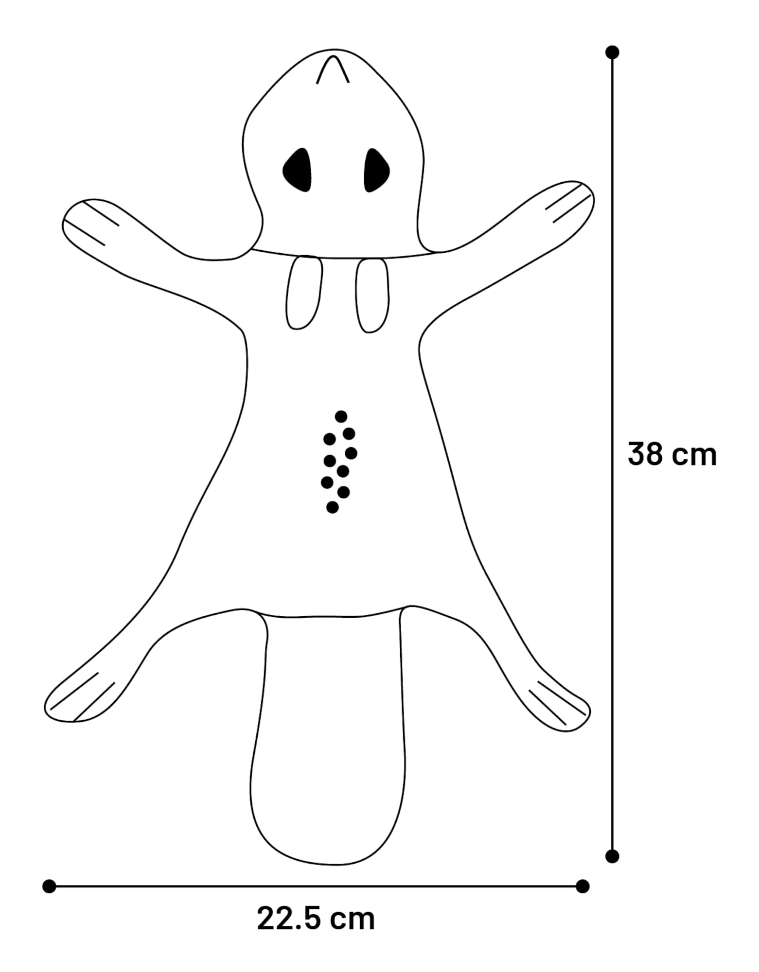 Pluszak wykonany został z miękkiego materiału. Jest bardzo przyjemny w dotyku. Ale to nie koniec niespodzianek! Zabawka w środku posiada piszczące elementy i trzeszczący dźwięk, który wydobywa się podczas zabawy.