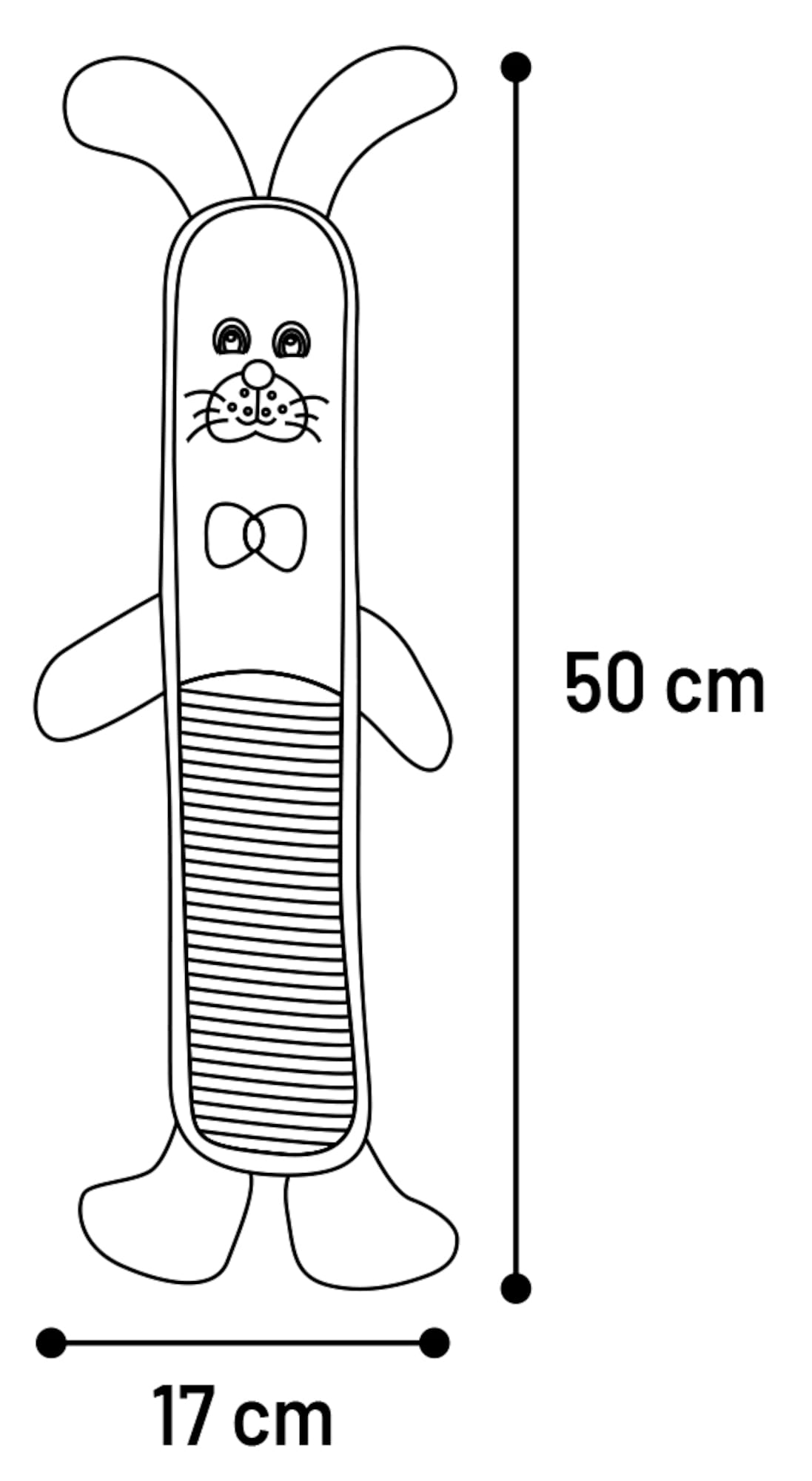 Przeuroczy królik/ zabawka dla psa wykonany jest z miękkiego pluszu, wykończony sztruksem. W środku posiada dźwięczną niespodziankę - piszczałkę, która zachęci do dalszych harców.