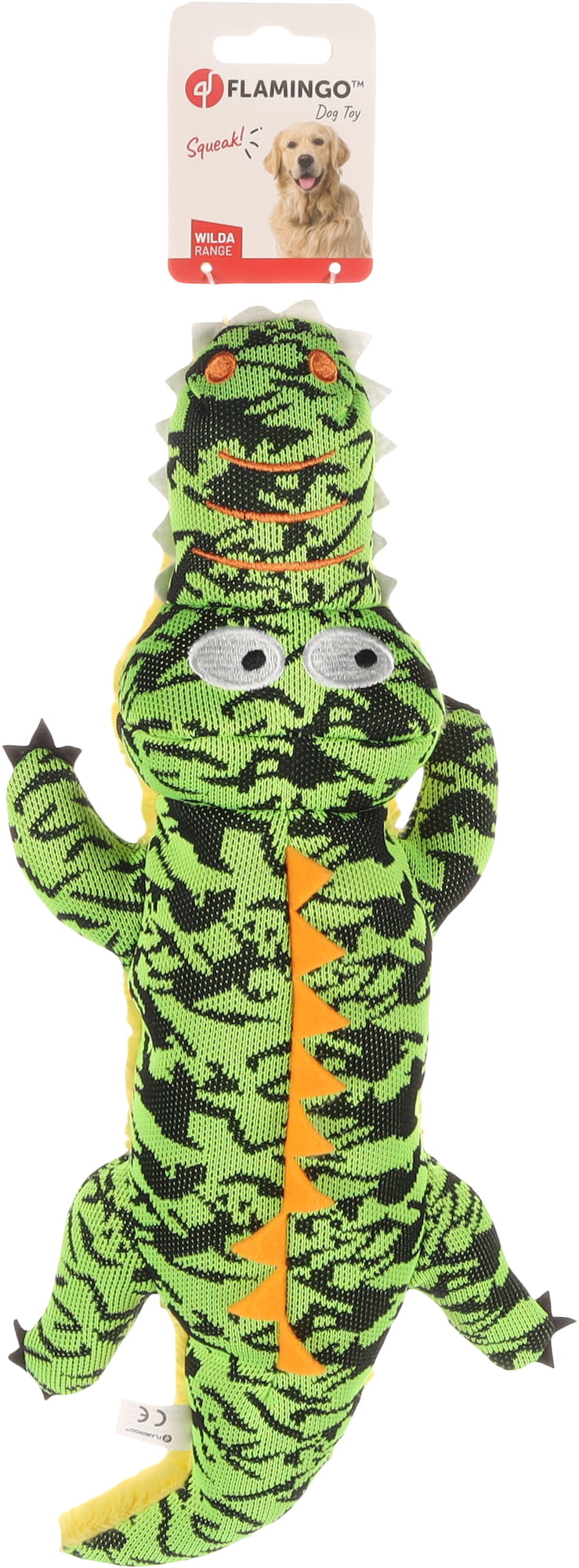 Zabawka dla psa w kształcie krokodyla wykonana została z miękkiego i przyjemnego w dotyku materiału. Aby jeszcze bardziej urozmaicić chwile harców - zwierzak w środku posiada piszczałkę.
