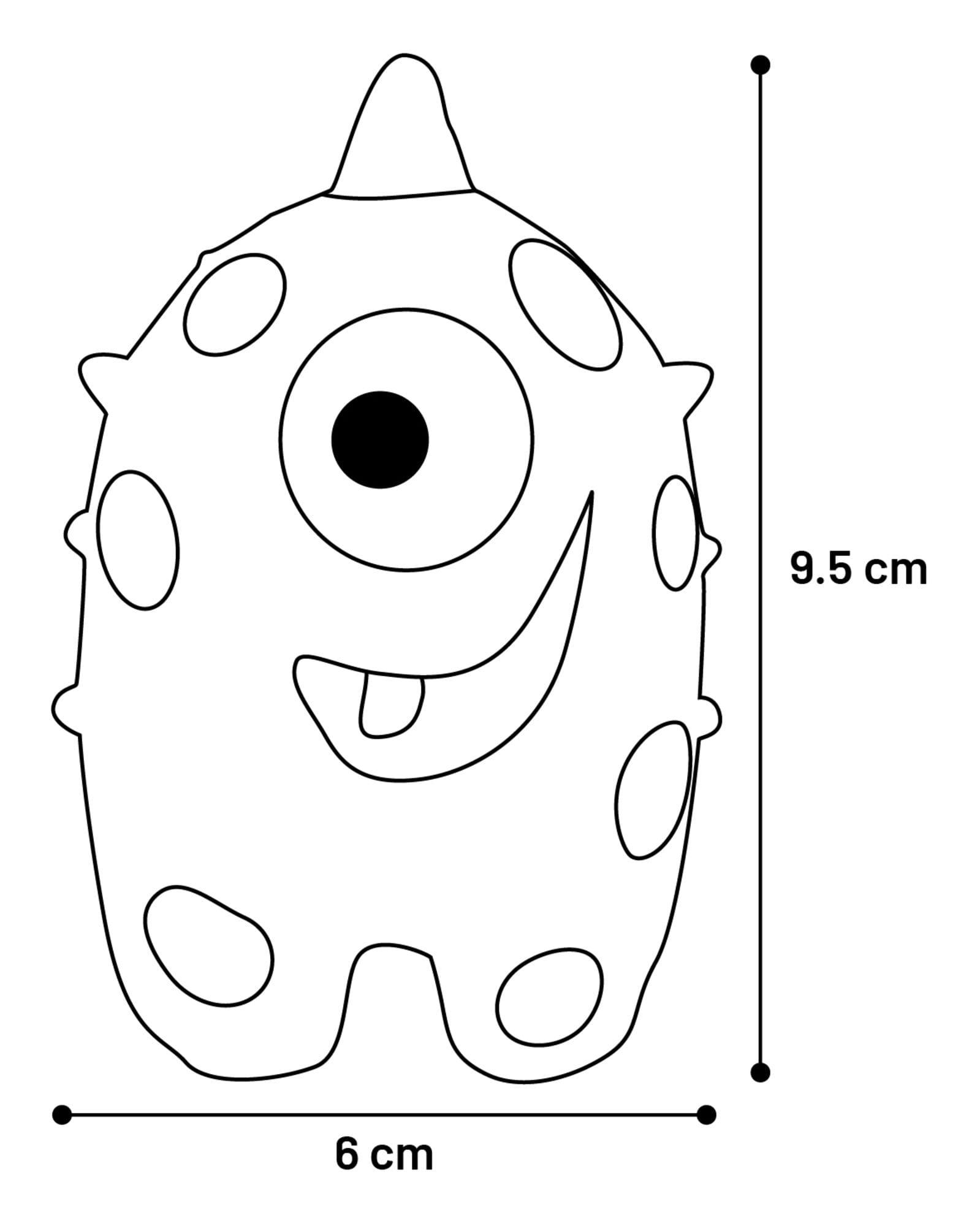 Zabawka dla psa wykonana została z bezpiecznego lateksu (wypełnionego włóknem poliestrowym). W środku potworka umieszczona została piszczałka, która zachęci do jeszcze bardziej intensywnych harców.