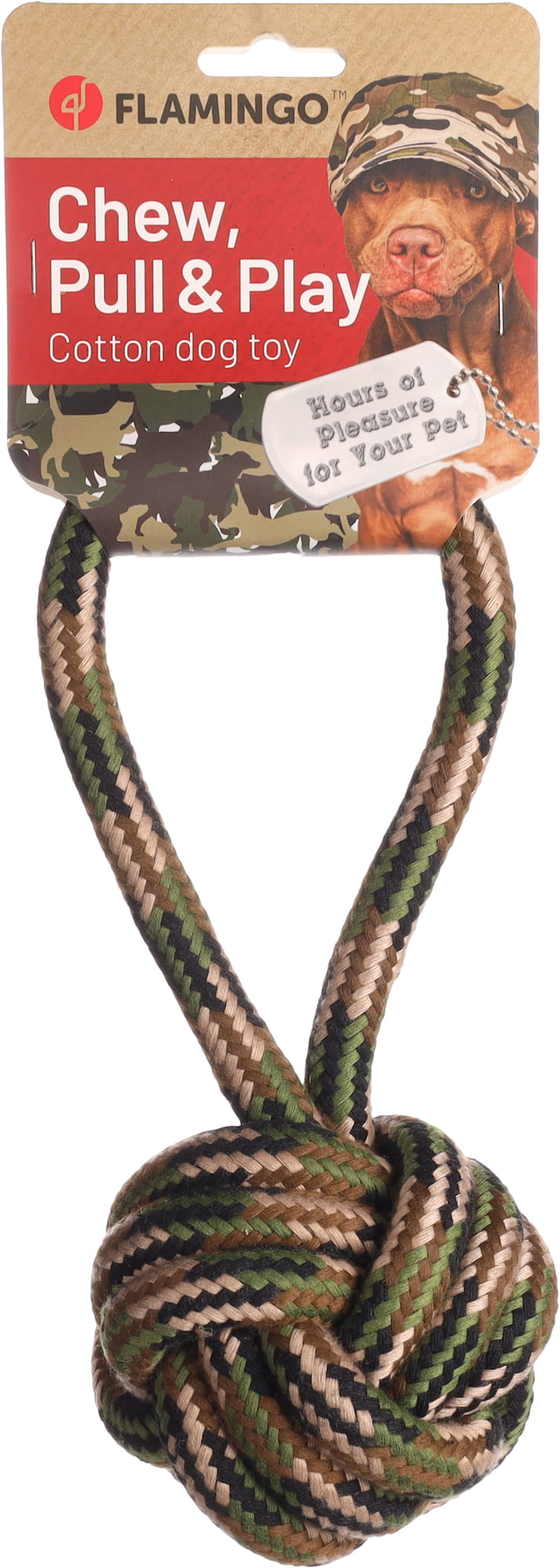 Zabawka dla psa wykonana została z wytrzymałej bawełny. Specjalna rączka zachęca do aportów i rzucania piłki - a to oznacza więcej, wspólnej aktywności z właścicielem!