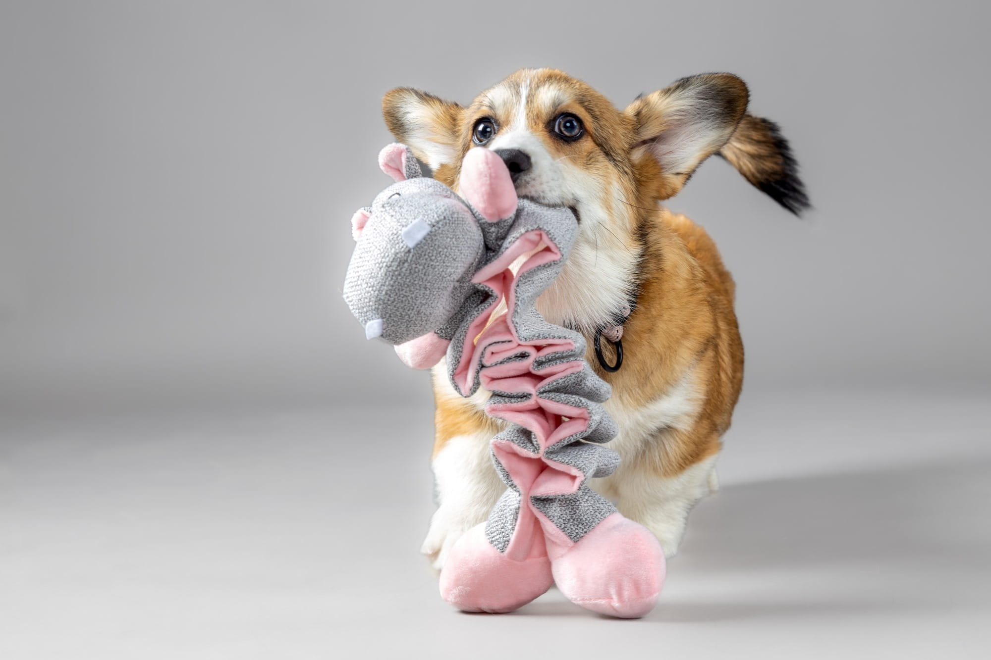 Miękka i przyjemna w dotyku przytulanka dla szczeniaka w kształcie hipopotama jest idealnym towarzyszem dla Twojego pupila!