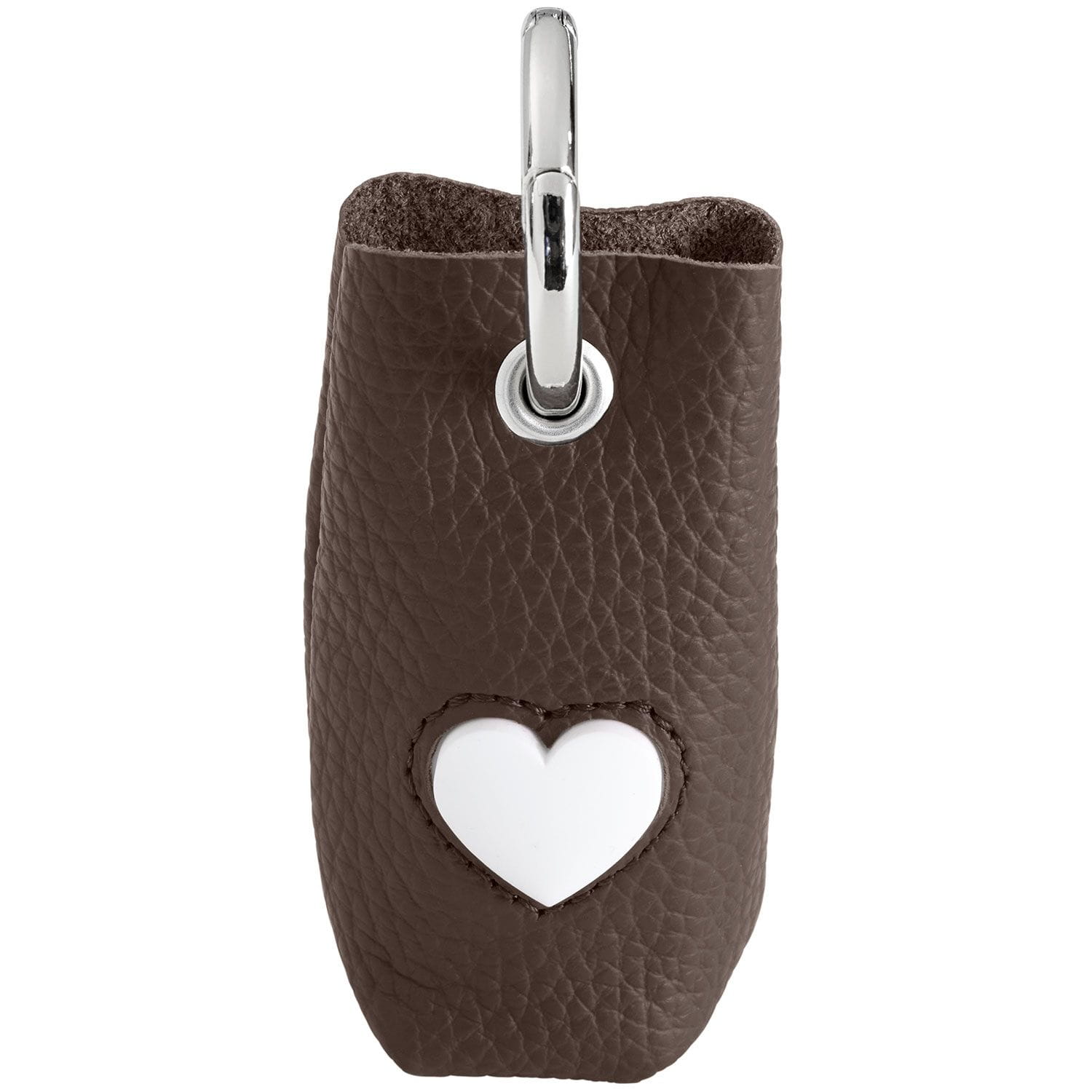 Piękne etui na woreczki na odchody wykonane zostało ze skóry bydlęcej. Niezwykle gustowny i elegancki pojemnik posiada ręcznie wszyte białe serce, które stanowi główny punkt designu.
