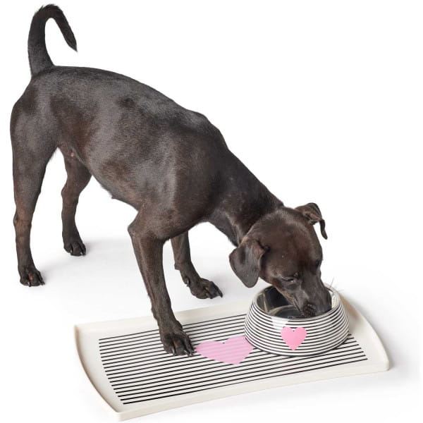 Spód miski wyposażony został w gumową obręcz uniemożliwiającą przemieszczanie się miski w trakcie jedzenia.