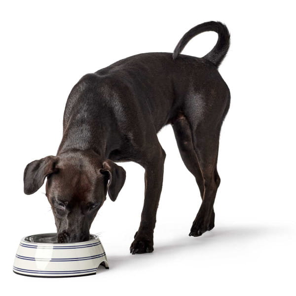Spód miski wyposażony został w gumową obręcz uniemożliwiającą przemieszczanie się miski w trakcie jedzenia.