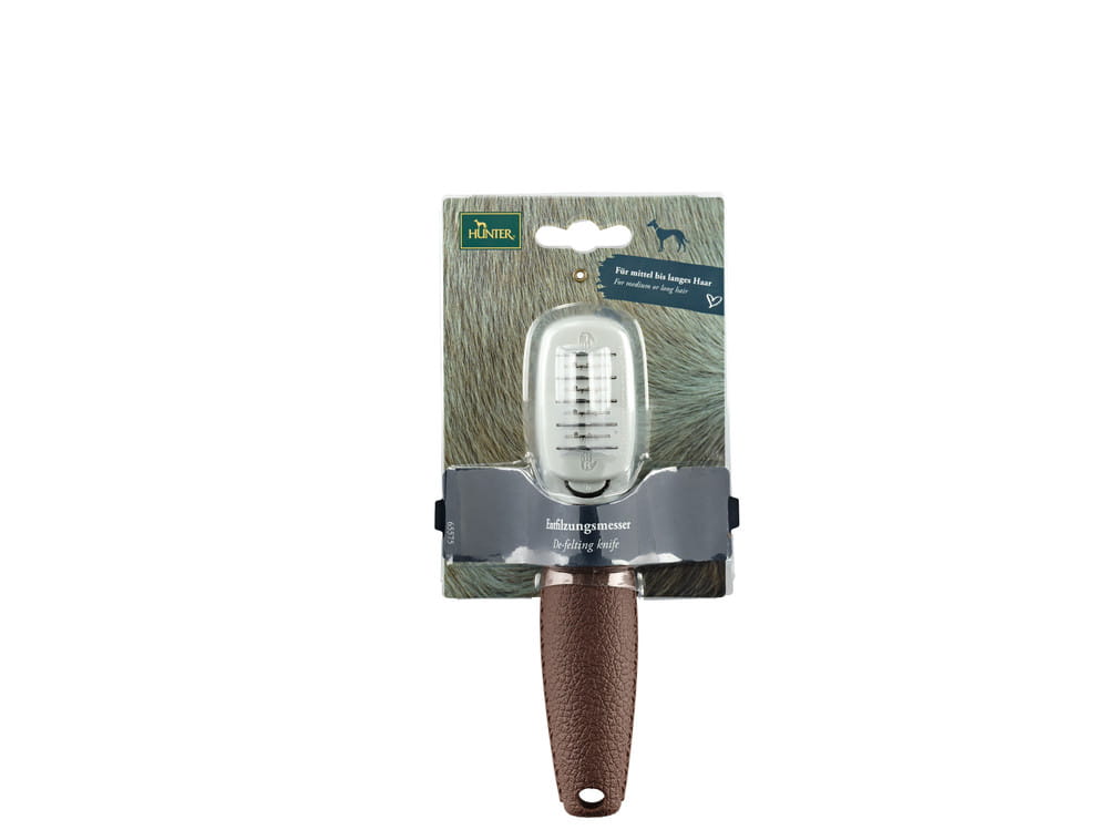 Nóż do rozczesywania kołtunów marki HUNTER delikatnie wygładza wierzchnią warstwę sierści, dodatkowo bezboleśnie usuwa kołtuny pojawiające się szczególnie u zwierząt z długą sierścią.
