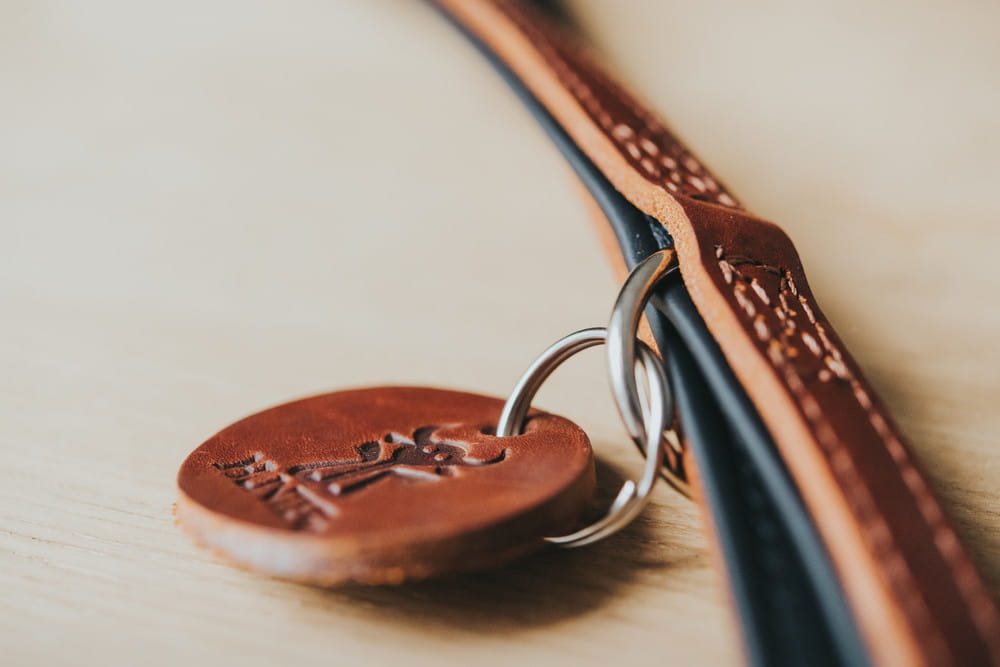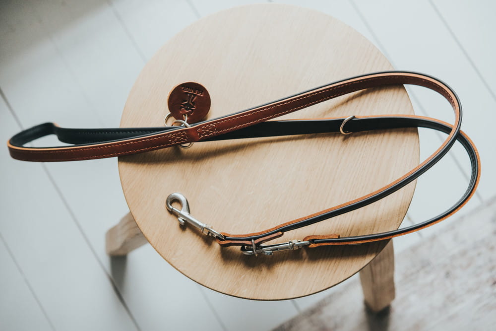 Przepinana smycz ze skóry bydlęcej. Dzięki 3 D-ringom istnieje możliwość łatwego regulowania smyczy.