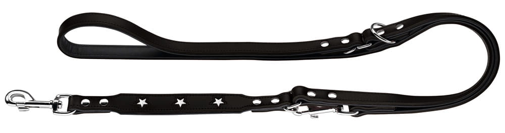 Smycz z serii Magic Star wykonana została ze skóry bydlęcej. Ręczne przeszycia wykonywane w niemieckiej fabryce są gwarancją najwyższej jakości akcesoriów dla zwierząt. Smycz dzięki możliwości szybkiej regulacji doskonale sprawdza się zarówno w mieście jak i w trakcie leśnych spacerów.