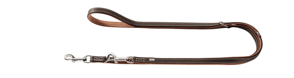 Przepinana smycz z serii Porto wykonana została ze skóry bydlęcej. Zastosowanie potrójnej regulacji sprawia, że każdy spacer to przyjemność bez względu czy odbywa się w centrum miasta, czy na łonie przyrody.