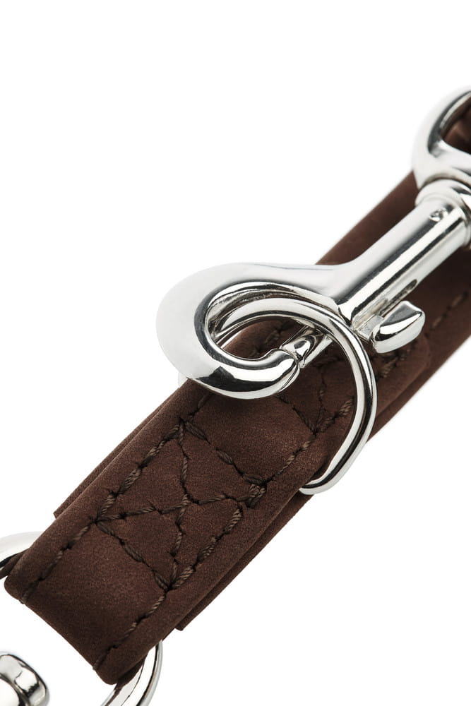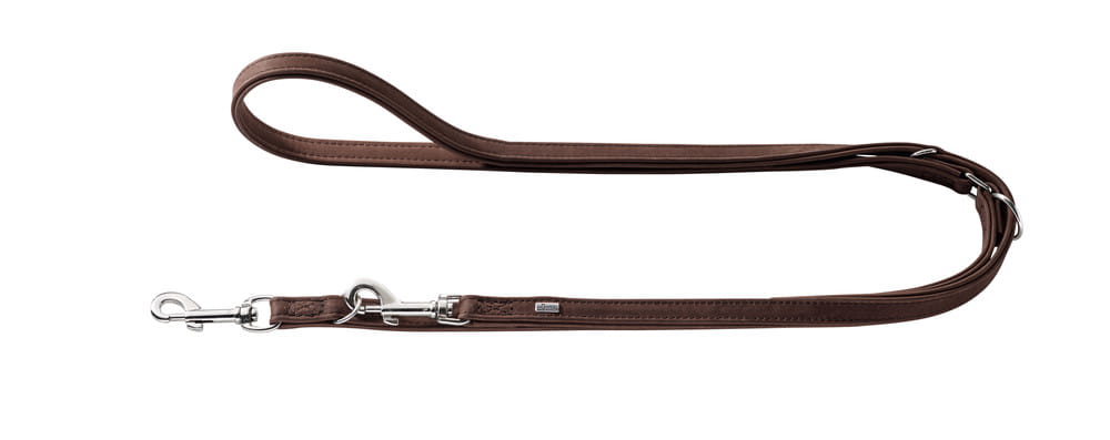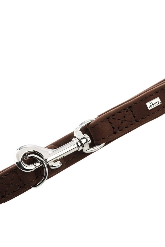 Przepinana smycz Rolling Hills wykonana została z najwyższej jakości skóry bydlęcej. Odpowiednie olejowanie gwarantuje smyczy miękkość i elastyczność.