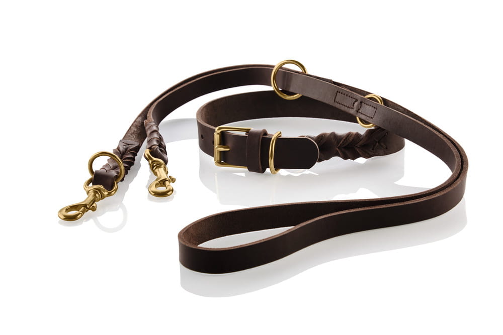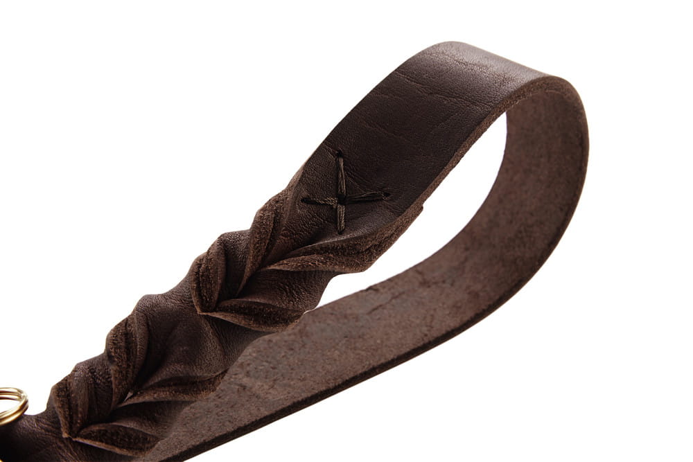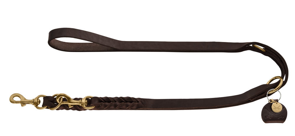 Mosiężne d-ringi umożliwiają regulację długości smyczy. Ozdobę stanowi splot minimalizujący ilość szwów. Smycz miękko leży w dłoni, doskonale sprawdza się zarówno na ważnych wyjściach, jak i podczas codziennych spacerów z pupilem.
