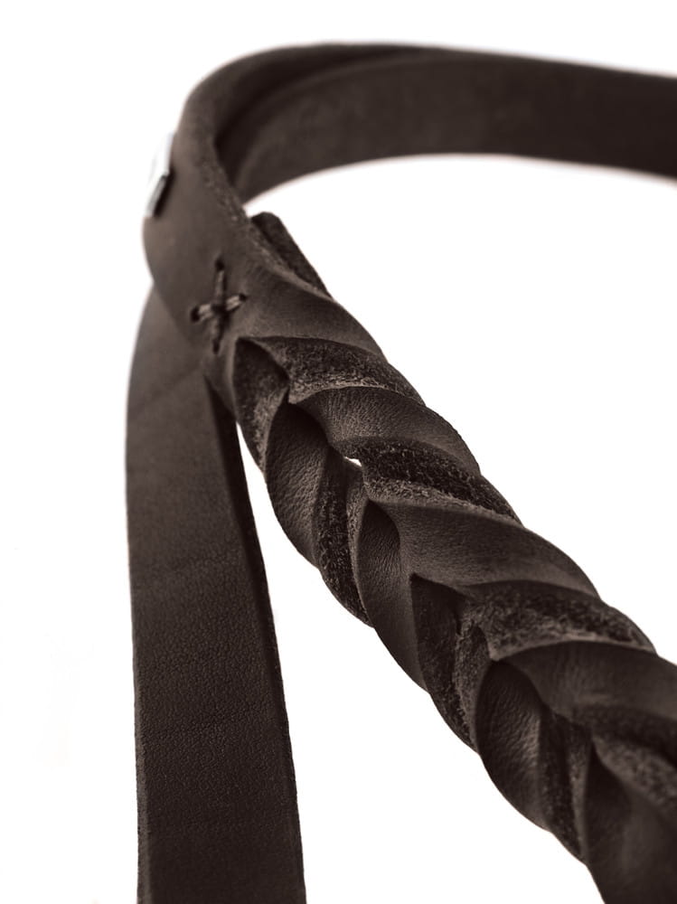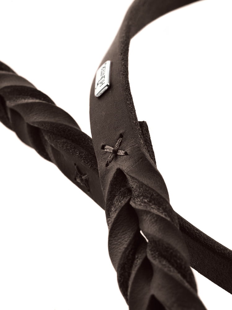 Smycz pozbawiona została zbędnych szwów, zastąpiły je piękne sploty skóry, które wyróżniają serię, oraz pozwalają na większą odporność na mechaniczne uszkodzenia jak rozciąganie czy pęknięcia.