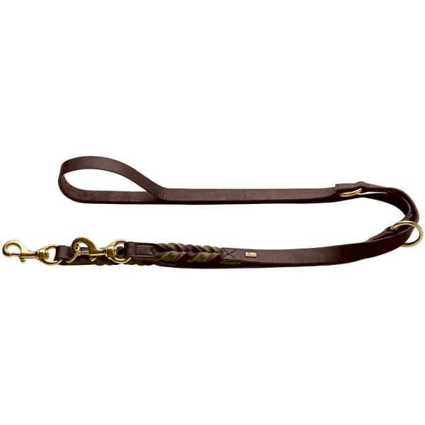 Przepinana smycz Solid Education Duo wykonana została z najwyższej jakości skóry bydlęcej. Dzięki natłuszczaniu i olejowaniu uzyskana została właściwa giętkość i elastyczność.
