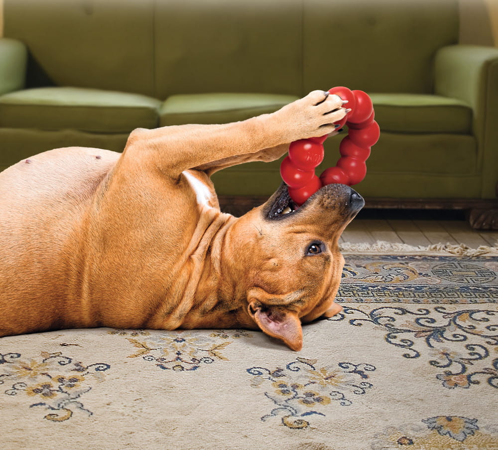Ring pozwala psu na rozładowanie nadmiaru emocji i energii, dzięki zaspokojeniu naturalnej potrzeby żucia eliminowana zostaje frustracja, która często przeradza się u pupila w behawioralne problemy.